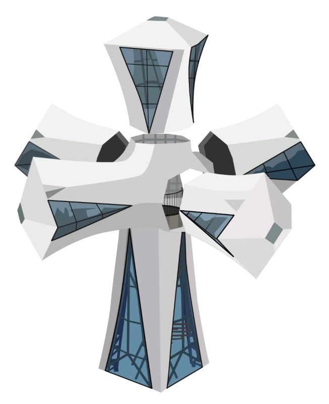 La torre è impostata su una pianta dodecagonale. La sua struttura è formata da dodici livelli di pannelli in pietra precompressa, realizzati fuori dal cantiere e assemblati in situ a partire dal 2018. L’installazione dell’ultimo pannello, avvenuta nel 2024, ha portato la torre a 142,5 metri, segnando una tappa decisiva verso il completamento della sua configurazione definitiva.