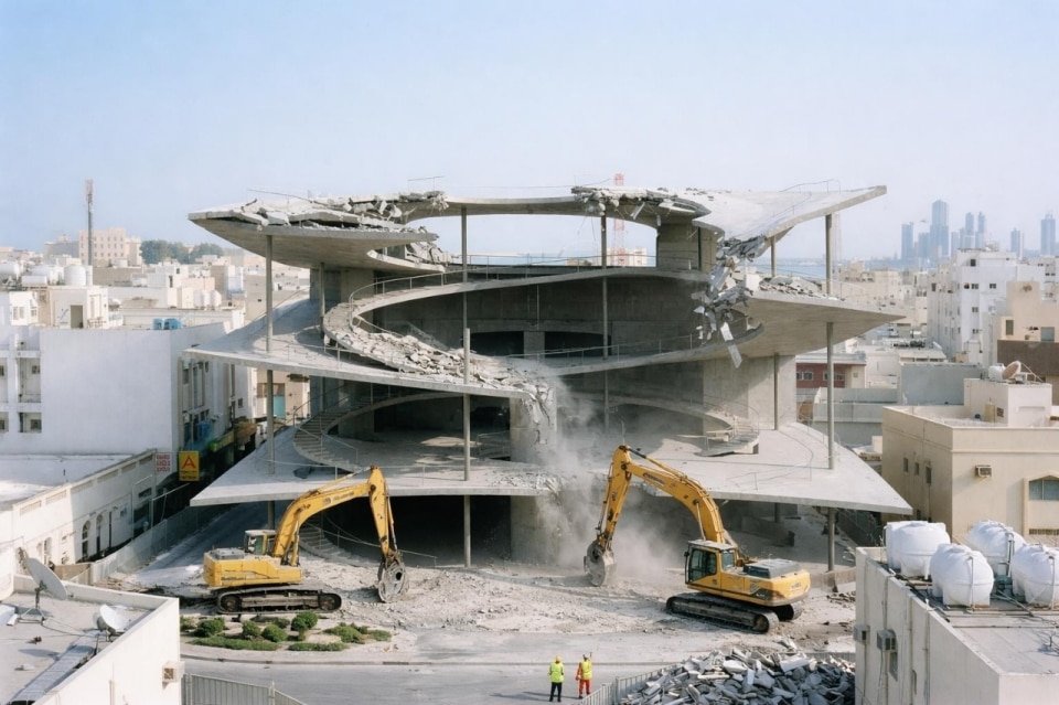 Nelle ultime settimane sono circolate online immagini e ricostruzioni contrastanti sulla demolizione di uno dei quattro parcheggi progettati dall’architetto svizzero Christian Kerez a Muharraq, in Bahrain. Accanto a contenuti generati dall’intelligenza artificiale, si sono diffuse anche notizie reali, ma frammentarie, spesso contraddittorie. Non è la demolizione in sé a essere falsa, ma il modo in cui è stata raccontata: più che una singola fake news, è una narrazione distorta, costruita su immagini false e informazioni parziali, ad aver trasformato una vicenda complessa in una storia apparentemente lineare. Costruito appena due anni fa, il progetto del primo parcheggio demolito aveva fatto il giro del mondo occupando le pagine delle principali riviste di architettura. Per capire cosa stesse succedendo davvero, abbiamo deciso di andare alla fonte: abbiamo intervistato Kerez e vi raccontiamo tutto quello che sappiamo oggi sullo stato dei quattro parcheggi di Muharraq. La storia comincia quindici anni fa.