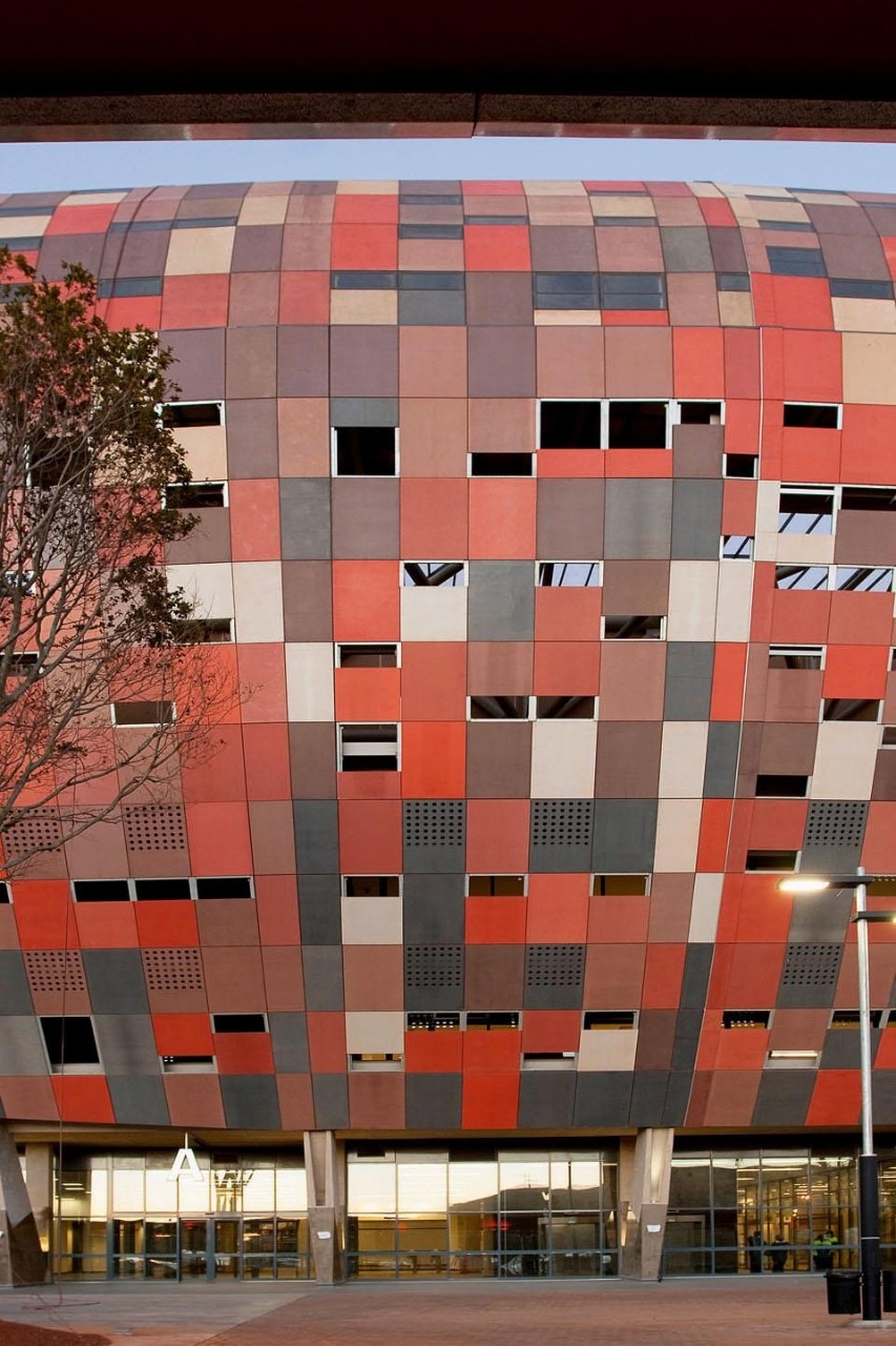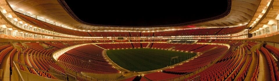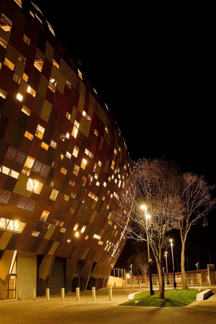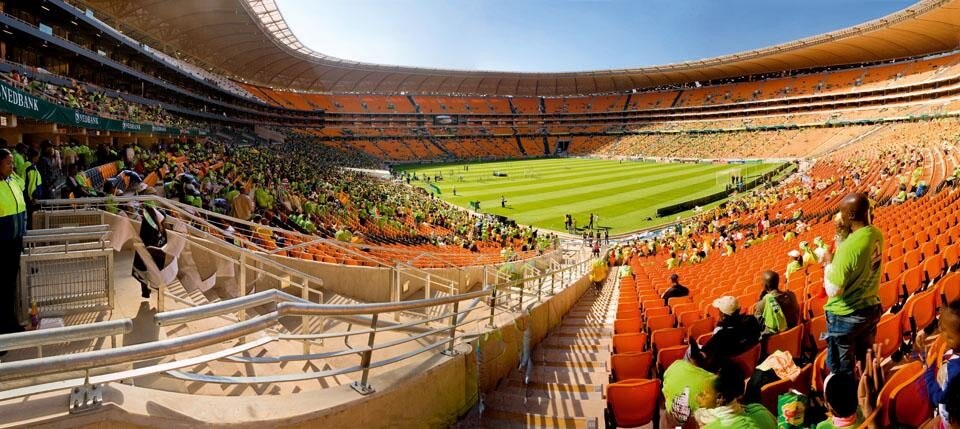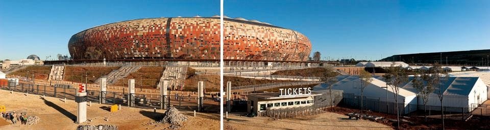 Con un meccanismo architettonico che simbolizza una calabash africana, Soweto, la città dei neri, propone al villaggio globale una presenza irrazionale. Agili e pragmatici ma anche ispirati, i progettisti hanno favorito questa interpretazione e racchiuso il campo da calcio con una tessitura i cui colori richiamano quelli della terra.