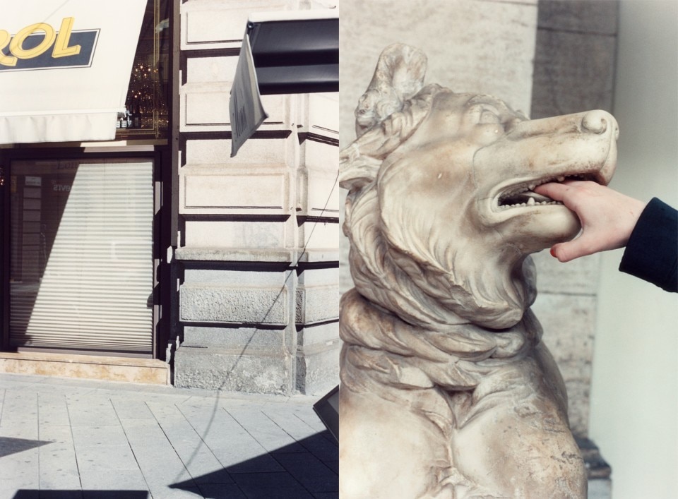 È un labirinto di frammenti, sagome, scorci. Il centro, la meta, altro non è che la reazione del fotografo alla loro presenza lungo il cammino. Gli scatti sembrano ricalcati sull’occhio dell’autore, tanto accompagnano il percorso girovago del suo sguardo. Tessendo una rete di rimandi, associazioni e tranelli, Clavarino si rivolge – con quella dose di ironia che solo una relazione intima consente – alla monumentale staticità del paesaggio italiano, investendola di rinnovate allegorie.
