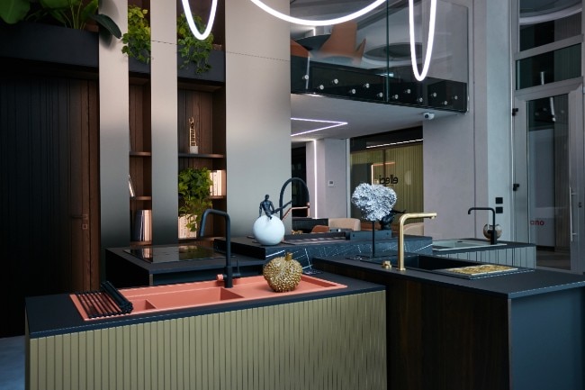 Nel resort progettato da Kengo Kuma su un’isola privata del Mar Rosso, le soluzioni in acciaio inox della serie SPILLO TECH interpretano il dialogo tra architettura, natura e benessere.