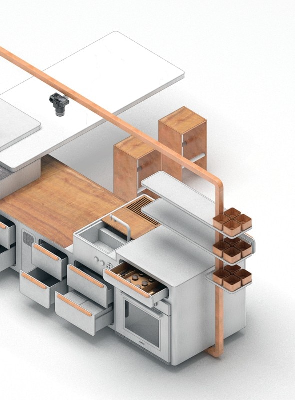 Venere Ferraro, docente del master, con Federico Elli e Riccardo Negri hanno immaginato tre utenti per i quali gli studenti hanno poi realizzato tre progetti. Zoya Rehman, Fiorella di Cunto e Gabriel Valls hanno pensato a C-Ater per un aspirante chef, mentre Lorenzo Paoli, Nehir Iren e Cari Espinosa hanno progettato Penelope per uno chef al lavoro in uno yacht privato; infine, la cucina outdoor per una food blogger è stato invece lo scenario di riferimento per Swatch, di Josefina Colombero, Franco Nabor e Rima Nafouj. Quest’ultimo progetto è stato premiato da una giuria riunita da Frigo2000 e composta dall’architetto Aldo Parisotto (Studio Architetti Parisotto e Formenton), dalla designer e architetto Michela Baldessari (Baldessari e Baldessari), dallo chef Gaia Giordano di Spazio Niko Romito (il progetto nato dallo chef stellato Niko Romito) e dall’architetto Giovanni Antonelli Dudan (Dudan design).