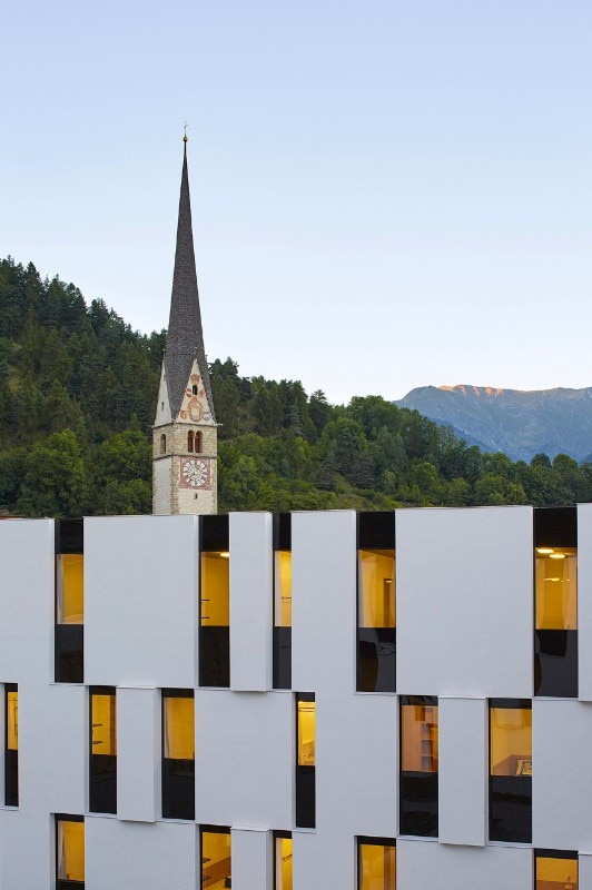 Il convitto Fürstenburg di Burgusio, al confine tra Italia e Svizzera, ospita 100 alunni della scuola professionale agraria e forestale. Uno degli obiettivi principali del progettista Werner Tscholl era quello di ridurre al minimo gli sprechi senza rinunciare all’eleganza che contraddistingue l’edificio. Elemento fondamentale per la riuscita del progetto sono le circa 180 finestre utilizzate dal profilo slanciato. I serramenti Finstral utilizzati fanno parte della linea Top 72 Nova-line di alluminio PVC.