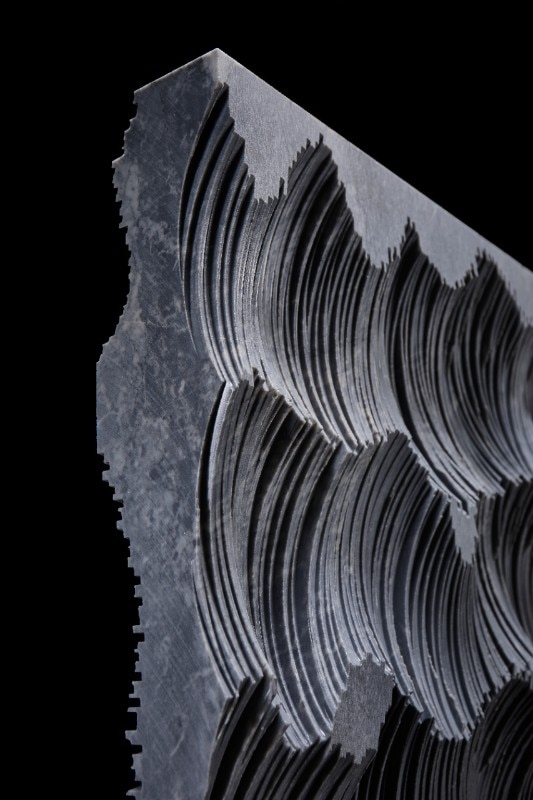 Tutte le opere sono state realizzate partendo da blocchi di uguali dimensioni (180x80x30 cm) per stimolare la valorizzazione della materia limitando la produzione dello scarto. Gli artisti che espongono sono lo stesso Raffaele Galiotto, con il suo “Atollo” (immagine di apertura), isola che emerge dall’acqua come una sorta di confine calcareo; Jon Isherwood che mostra la tensione tra forma e superficie nella pietra scolpita, Nicolas Bertoux immortala nella pietra “houle”, un’onda marina sinusoidale; Sylvestre Gauvrit che scolpisce nel marmo di Carrara la musica classica.