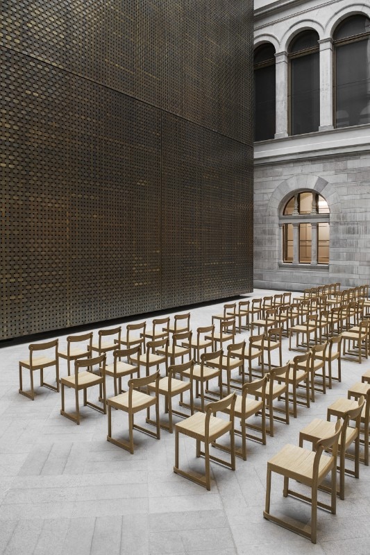 Per confrontarsi con gli spazi monumentali del museo, oltre che con i dipinti di Perugino e Rembrandt, serviva una sedia elegante e dai dettagli essenziali. I designer di TAF Studio si sono quindi ispirati a una seduta storica, progettata dall’architetto svedese Sven Markelius all’inizio del XX secolo.