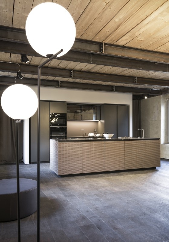 In esclusiva per le abitazioni del progetto Horti e in collaborazione con Milano Contract District, il maestro del design ha inoltre reinterpretato una delle cucine da lui disegnate per Ernestomeda. Queste sono caratterizzate da una nuova pelle di frassino lavorato con una fresa a controllo numerico, creando una trama regolare che esalta i chiaroscuri e fa vibrare la luce. Il legno contrasta con il piano di marmo, scuro e lucido, e dà vita a un ambiente contemporaneo e accogliente.