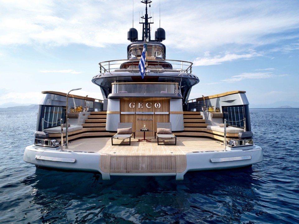 Ultimo nato in casa Admiral è Geco, un superyacht charter di 55 metri varato lo scorso giugno. Capolavoro Made in Italy, Geco si distingue per lo stile impattante della prua e per l’innovativo disegno della poppa che ospita un’area denominata beach club e definita da alte pareti laterali vetrate studiate per offrire protezione nelle giornate ventose e un’ampia piattaforma prendisole servita da una scala che agevola l'accesso al mare. Sul ponte superiore, il dialogo continuo tra gli spazi esterni e interni è assecondato da una porta a vetri scorrevole che crea un collegamento visivo tra il salone superiore, il salone esterno e la zona pranzo.