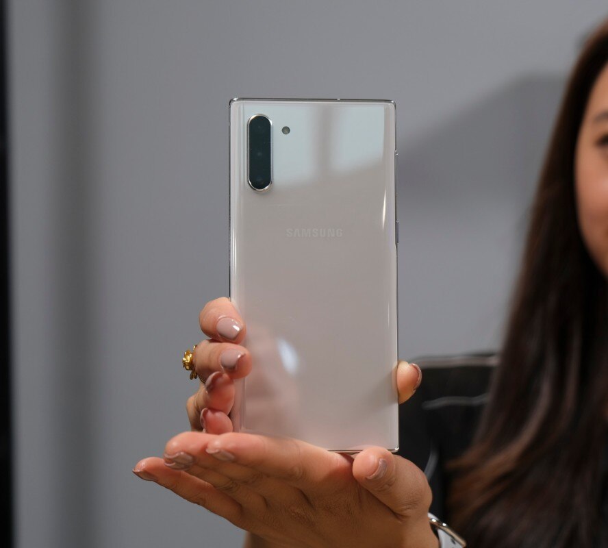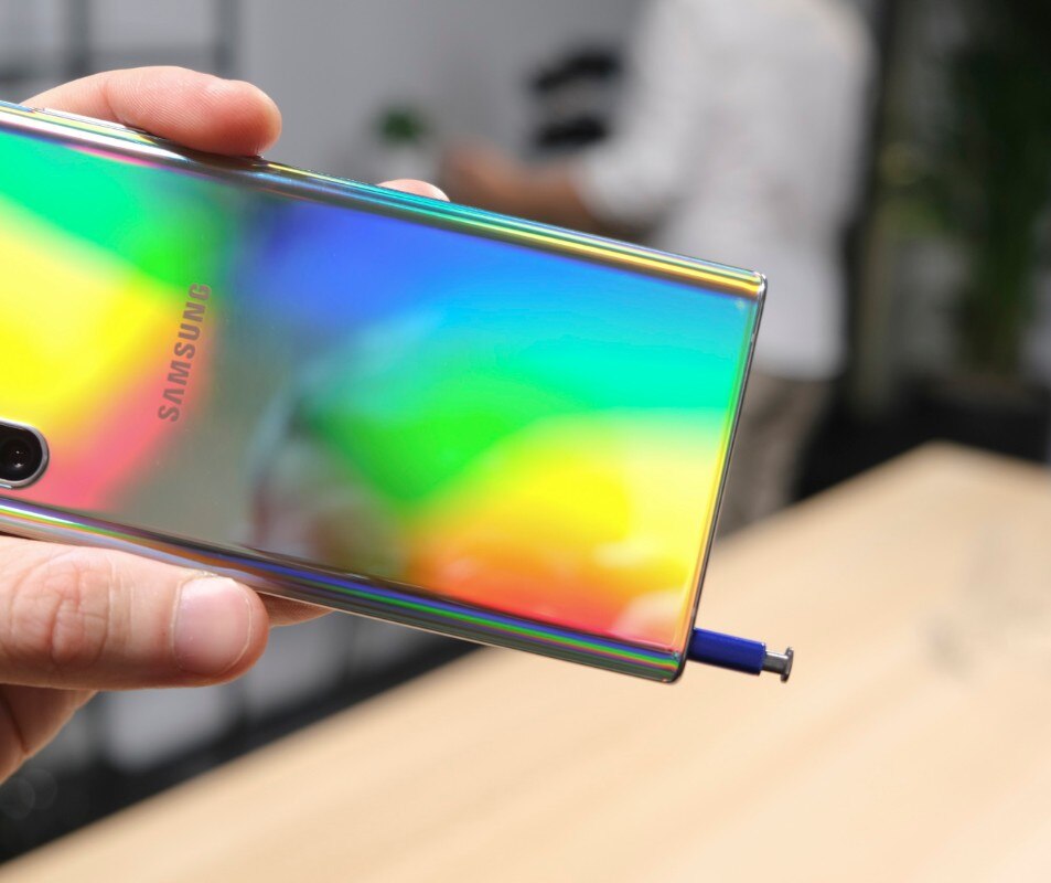 La colorazione principale dei nuovi Galaxy Note 10, che potete vedere nelle foto della nostra galleria, si chiama Aura Glow. È un argento con riflessi prismatici cangianti che riprendono i colori circostanti con sfumature imprevedibili. È una colorazione coraggiosa, alla quale Samsung ha comprensibilmente affiancato le versioni Aura Black e Aura White, cioè un nero carbone e un bianco perla riflettenti dal tono più istituzionale.