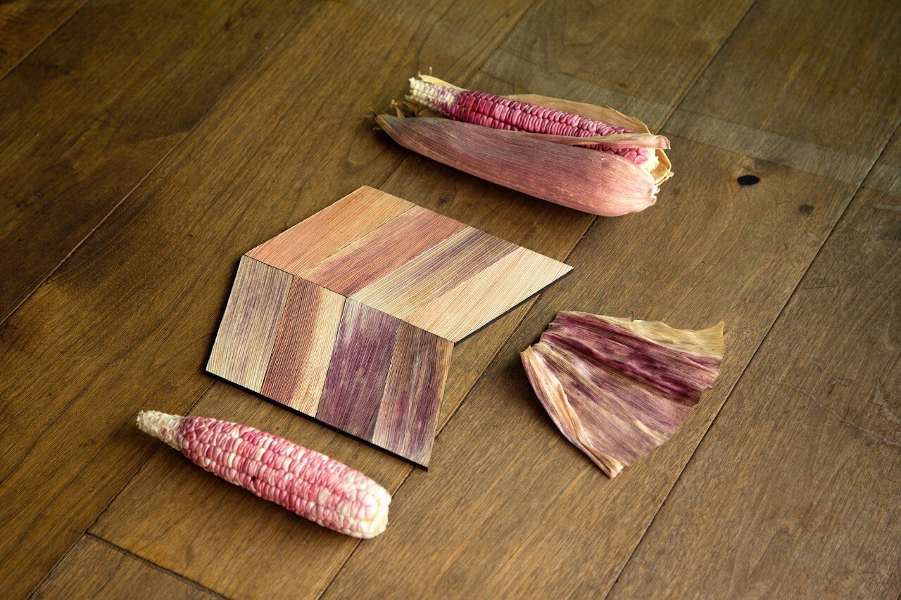 Totomoxtle è un nuovo materiale da rivestimento realizzato con le bucce di mais messicano, un alimento con un ruolo centrale nella gastronomia locale che spazia dal viola intenso alle morbide tonalità giallo crema. Dal 2016, Fernando Laposse collabora con un gruppo di famiglie di Tonahuixtla. Designer messicano, l'approccio di Fernando è quello di prendere un materiale naturale che spesso viene considerato uno scarto (come le bucce di mais) e, con una ricerca approfondita, trasformarlo in un pezzo di design.