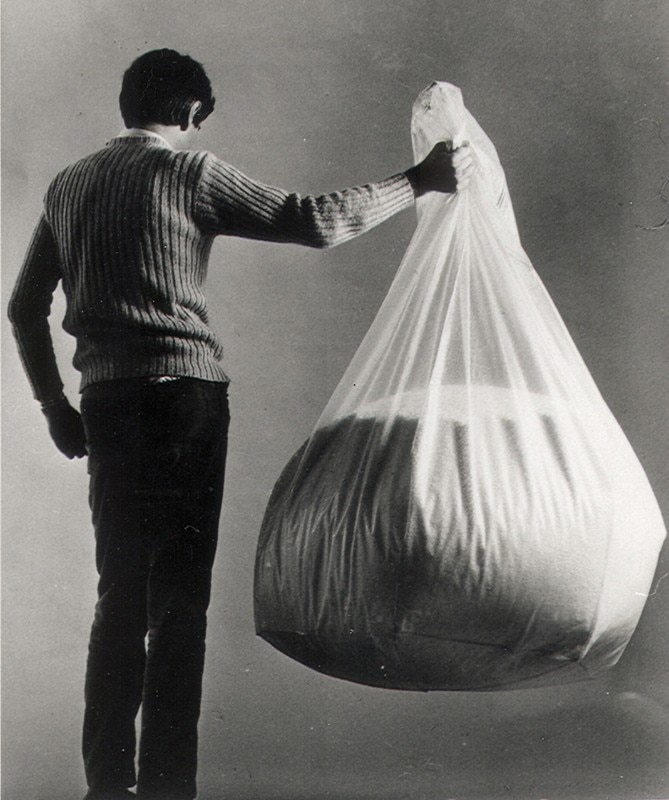 Il 1969 è un anno di grandi trasformazioni sociali, una fase di contestazione e di liberazione del desiderio, in cui anche il design deve adattarsi ai nuovi stili di vita di una modernità che ben presto diventerà irrimediabilmente liquida. Tre giovani e sconosciuti architetti torinesi – Piero Gatti, Cesare Paolini e Franco Teodoro – prototipano una seduta che segue il movimento ed esprime gli ideali di creatività e libertà che animano quel periodo: è un Sacco di vinile trasparente riempito per due terzi di granuli grezzi di polistirolo espanso, che ben presto una dei classici del design italiano.