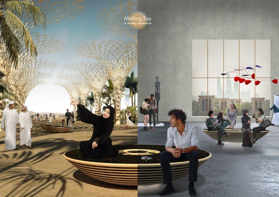 Melting Top “a seating experience” è la seduta progettata da Xilografia per il concorso “Design Competition Expo Dubai 2020”, che chiedeva alle imprese lombarde e a giovani designer di progettare un prodotto o una struttura temporanea per l’Esposizione Universale di questo autunno. Xilografia, azienda che da decenni progetta allestimenti per fiere ed eventi, è una delle realtà premiate da Regione Lombardia e Politecnico di Milano per Melting Top.