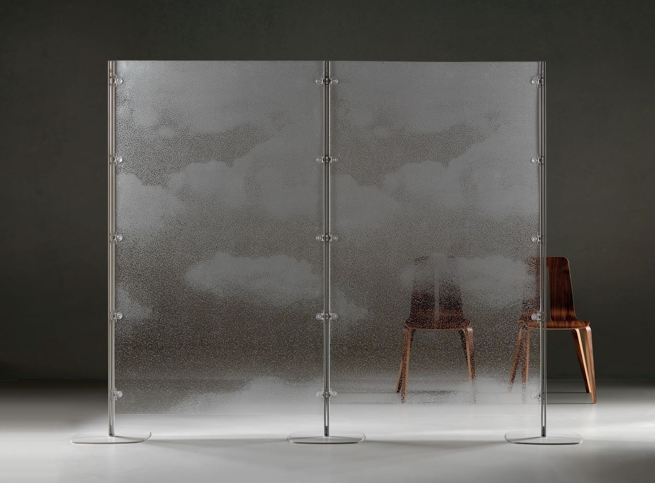La collezione Arianna si amplia con il pannello in PETG flessibile trasparente, dalla texture materica che ricorda i tessuti: si tratta di una struttura modulare costruita con l’uso di montanti e pannelli. Disegnato da Michele De Lucchi e Sezgin Aksu, il sistema divisorio Battista è composto da colonne portanti di alluminio e base di ghisa, mentre i teli sono in tessuto Trevira Cs Bioactive con ioni d’argento ad effetto antimicrobico permanente.