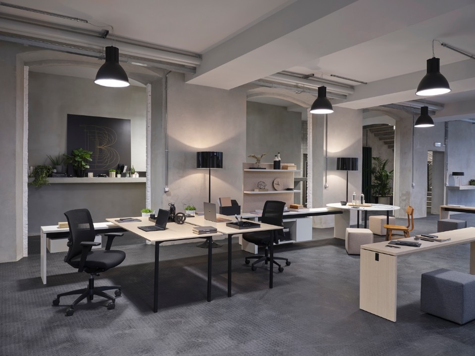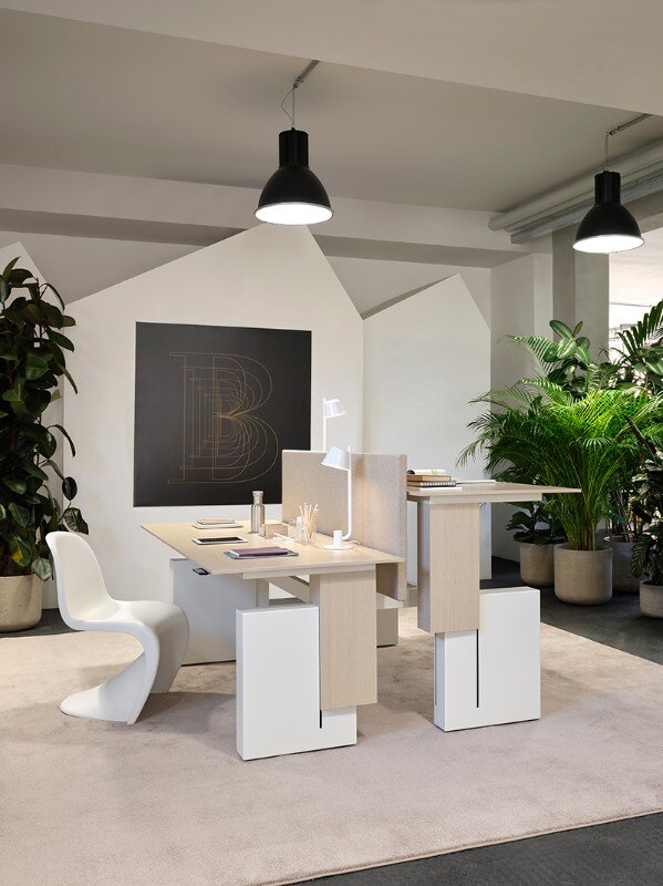 Recentemente presentato, Bridge è il sistema di arredi per ufficio di Citterio composto da panche e tavoli pensati per soddisfare le esigenze dell’ambiente lavoro. Gli elementi modulari, autoportanti o in appoggio, possono essere combinati tra loro o utilizzati singolarmente. Con finalità diverse a seconda dell’altezza: sono alte 67 cm le panche usate come piano di lavoro e le cassettiere sospese, 75 le scrivanie e i tavoli per riunioni, 107 le panche-reception.