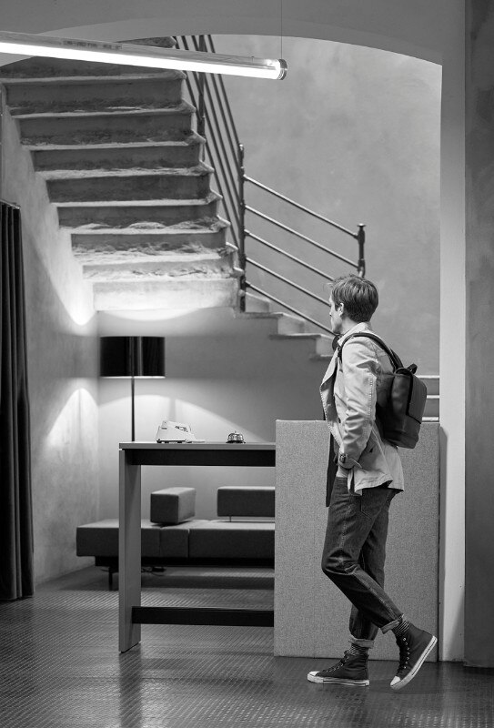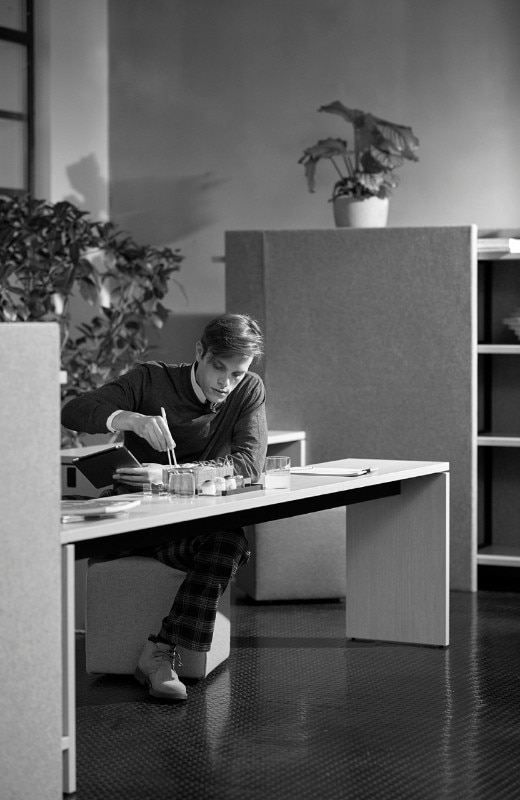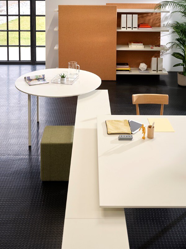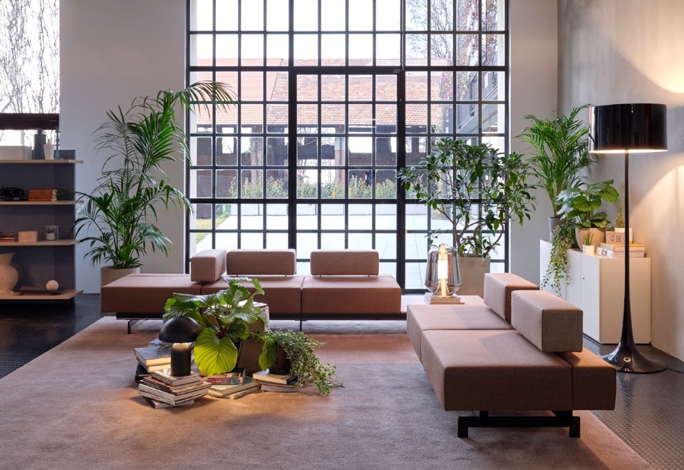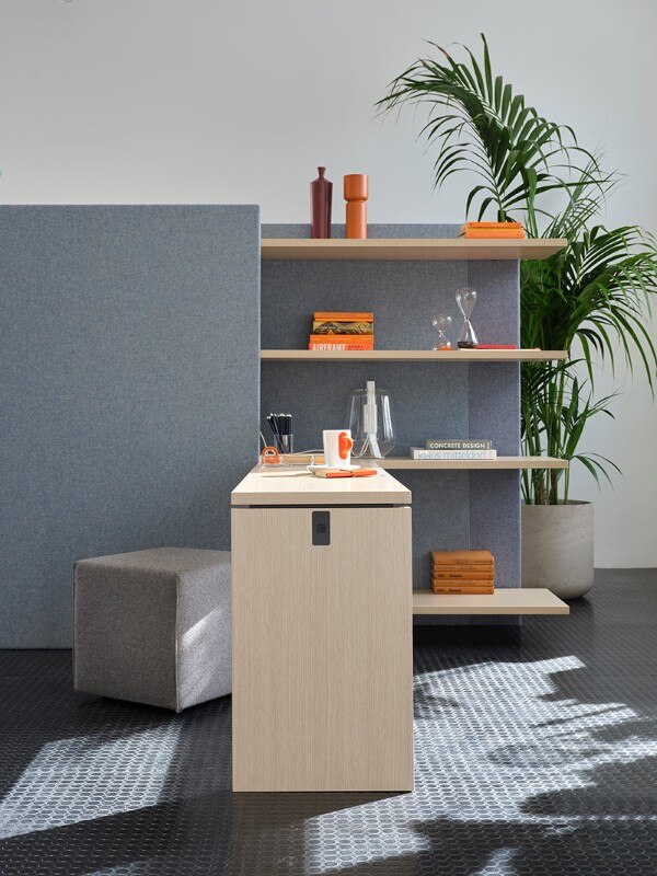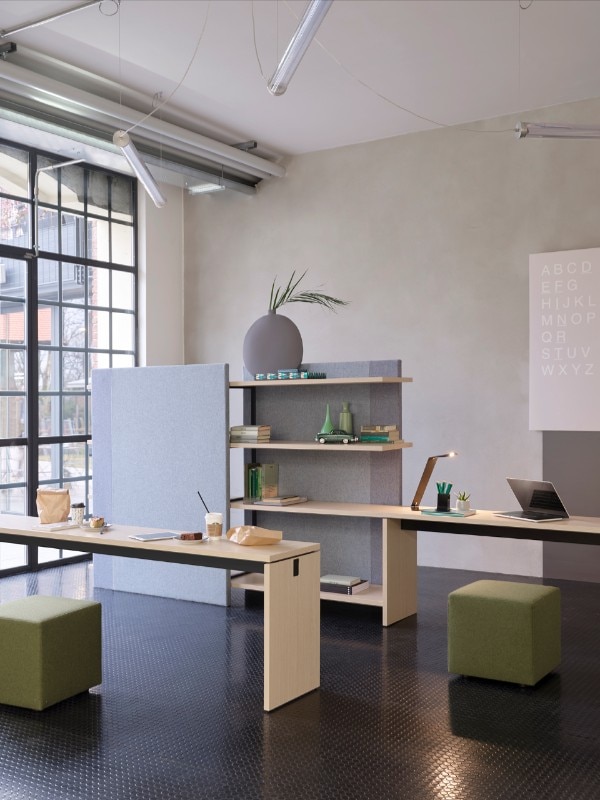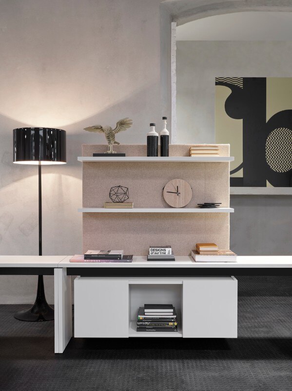 Citterio propone prodotti flessibili che permettono di svolgere più azioni nello stesso spazio: dall’accoglienza allo scambio di idee, dalla discussione alla riflessione, alla pausa. Alla serie possono essere aggiunte librerie acustiche, contenitori ad ante, schermi acustici o vetrati.