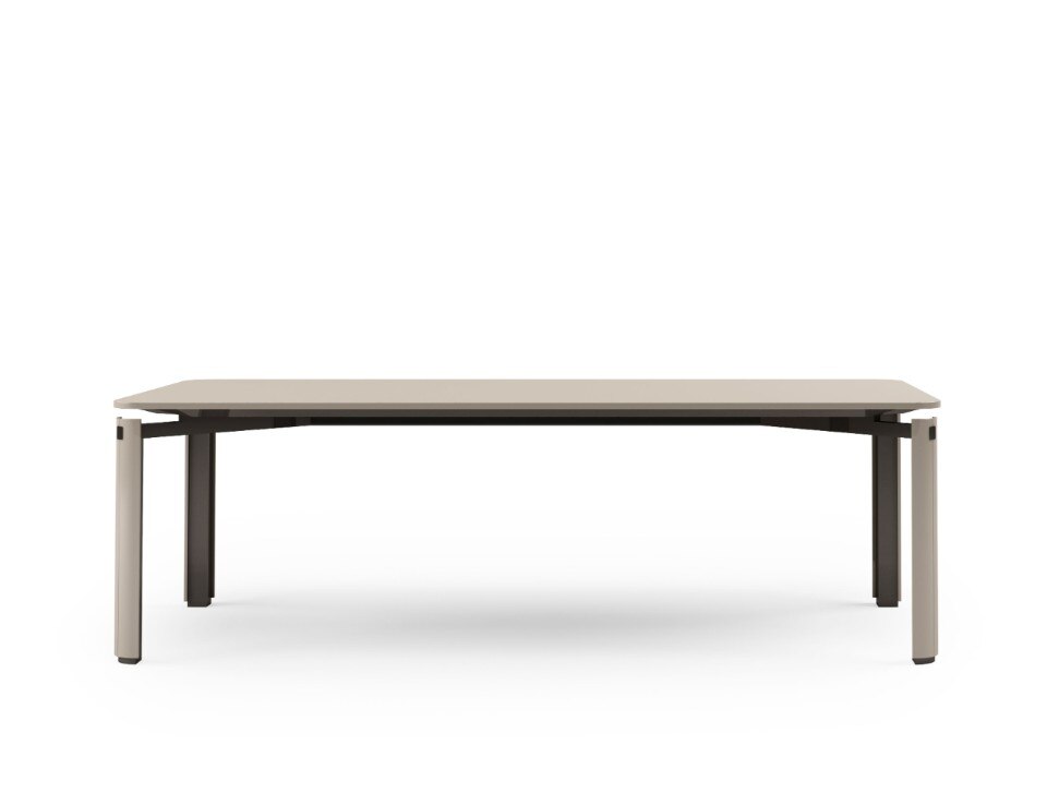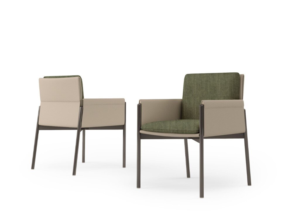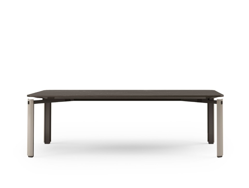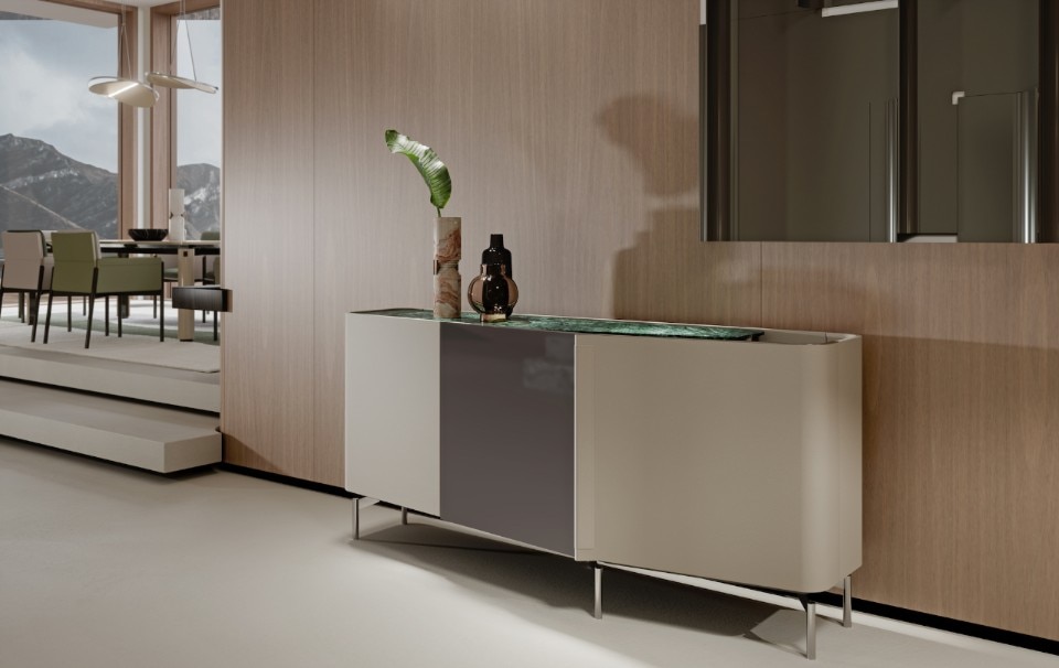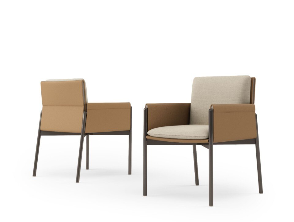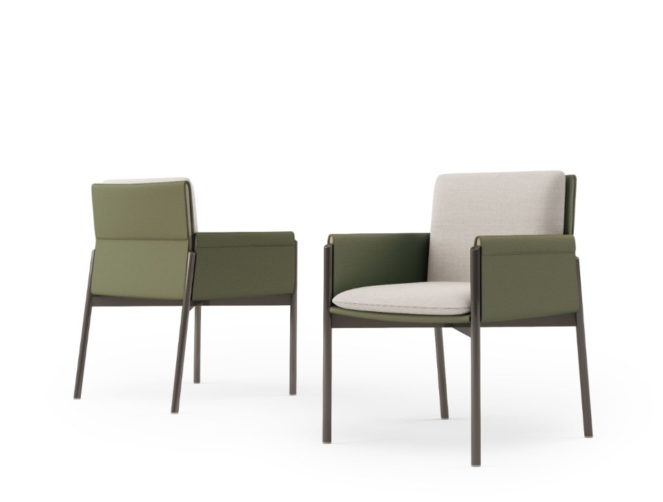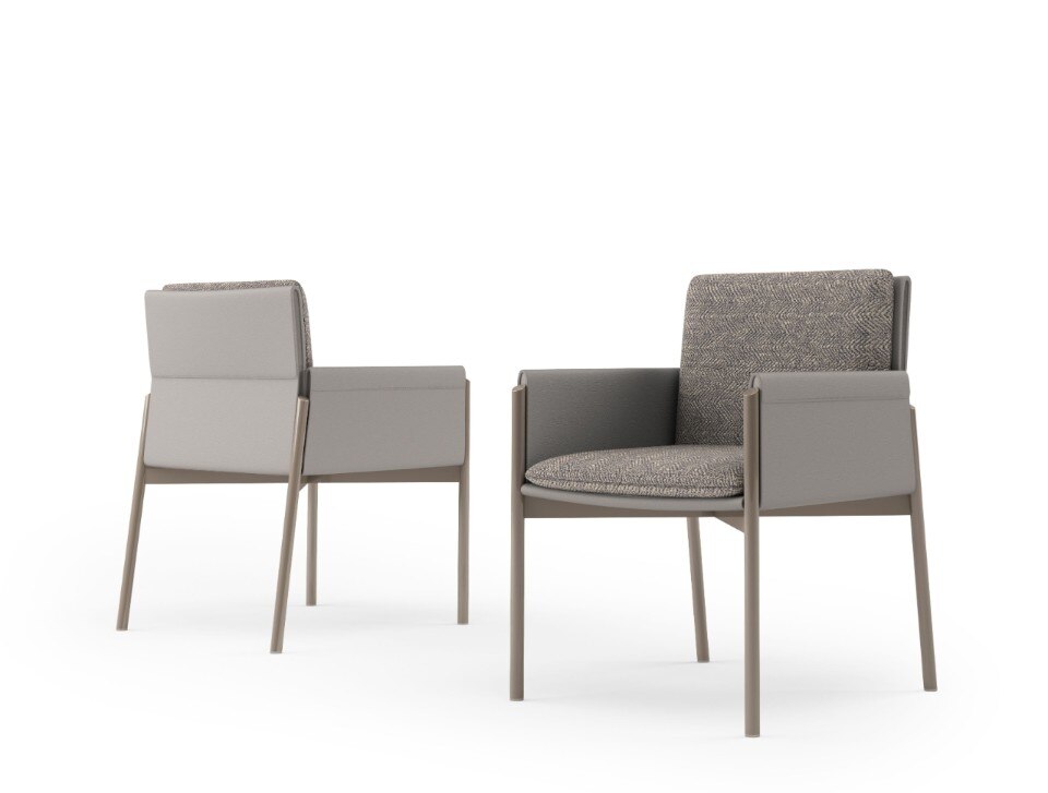 Anche la sovrapposizione di piani è elemento caratterizzante di tutta la collezione, evidente sopratutto nei dettagli degli elementi contenitivi. Ma, in realtà, è la sospensione l’ideale sintesi di tutta la collezione, evidente nella sottile base delle sedie e nelle gambe del tavolo, entrambe in metallo laccato.