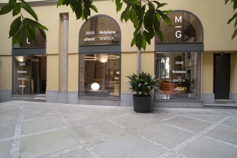MIG Mezzalira Investment Group apre il primo showroom a Milano dopo quelli di Londra, Madrid e Pechino. Il gruppo industriale composto da quattro aziende di arredo – Jesse, Rotoliana, Sinetica e Sitland – sceglie come location un edificio del ‘700 in via della Spiga. Inizialmente progettato da Tadao Ando, lo spazio di 400 mq include una parete curva in cemento dell’architetto giapponese, lunga 12 metri e alta 7, che si propone come fulcro dello showroom e lo divide in due livelli.