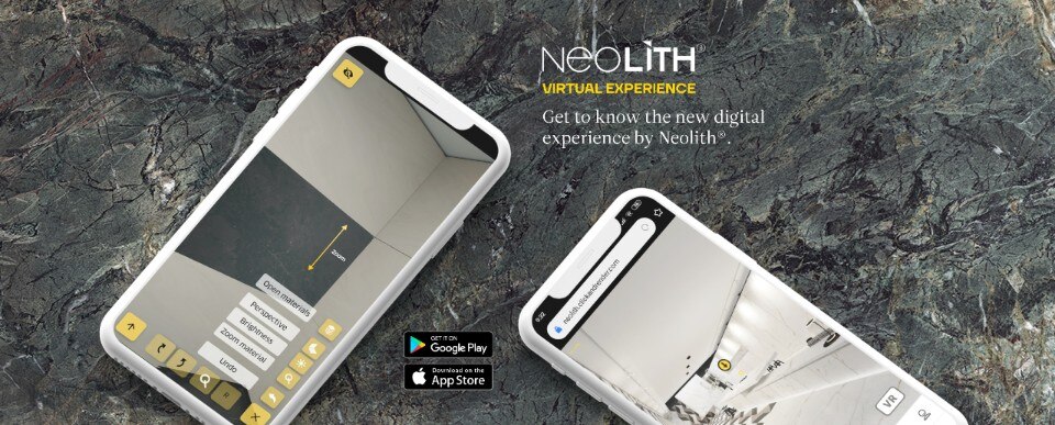 Neolith AR è l’app di realtà aumentata che offre la possibilità di rivestire qualsiasi ambiente con le superfici del brand, partendo da una fotografia o da un’immagine offerta dalla galleria. Segue Neolith VR, app che utilizza la realtà virtuale e conduce in uno spazio immersivo dove combinare superfici e finiture come in uno stand fieristico digitale.