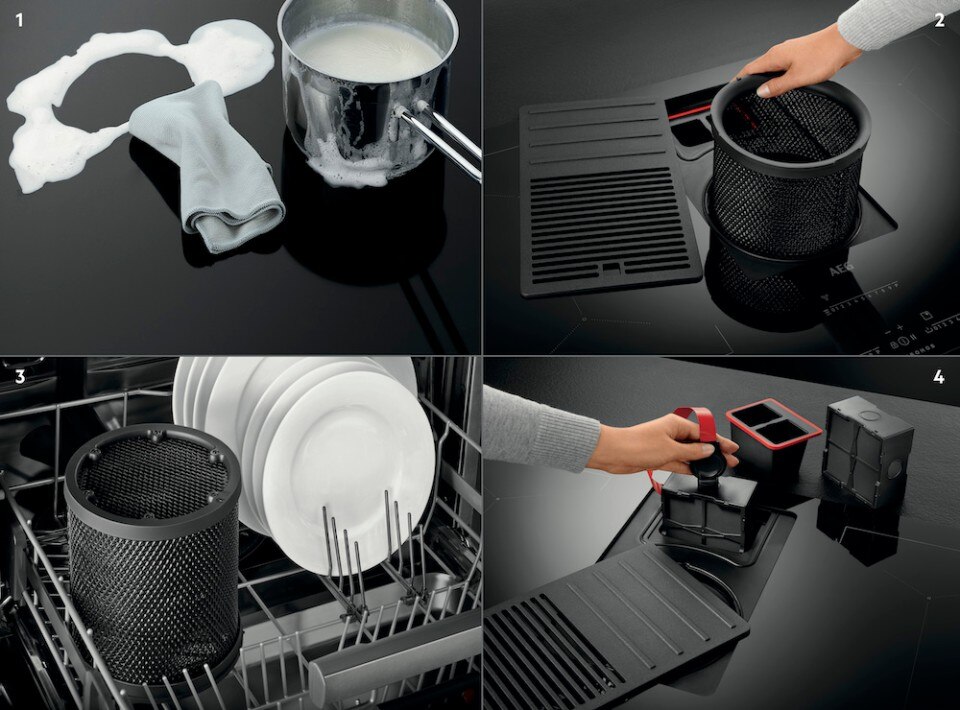 Quest’ultima si compone di un filtro in acciaio inox e di 4 filtri di carbone Ultra CharcoalFilter, che possono assorbire l’85% dei fumi. Per evitare sprechi energetici, la tecnologia Hob2Hood adatta in maniera automatica la potenza di aspirazione in base all’intensità del calore.