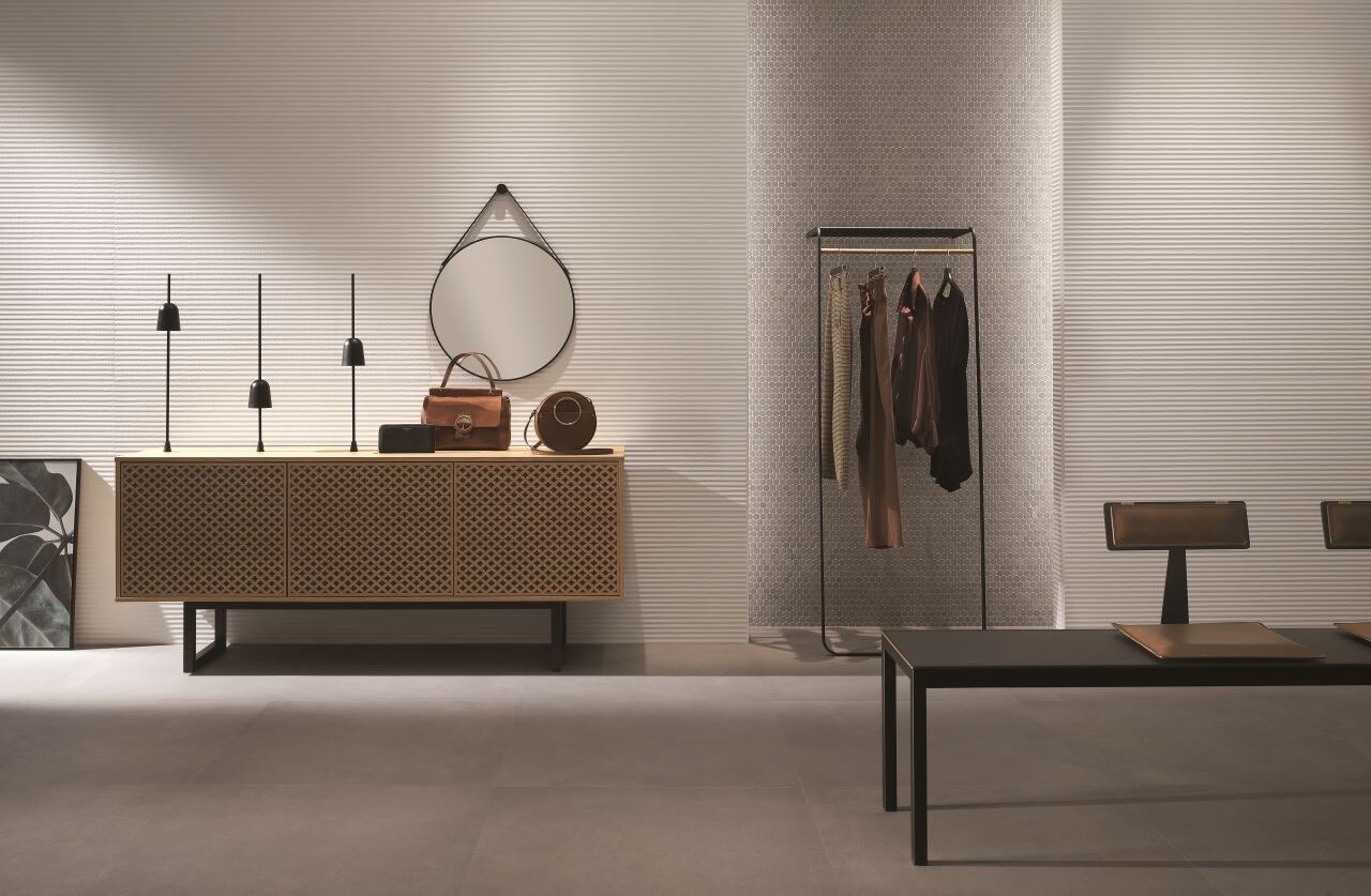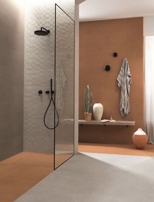 Summer si caratterizza per le grafiche materiche e luminose – queste ultime ottenute con l’inserimento di residui minerali. La collezione ricrea le imperfezioni della terracotta artigianale, ma propone anche combinazioni di effetti tridimensionali lucidi su fondi opachi. Una ricerca materica operata dagli artigiani di Fap Ceramiche che si traduce nelle superfici Track, impreziosite da linee decorative, e Flower, definite da petali con profili brillanti.
