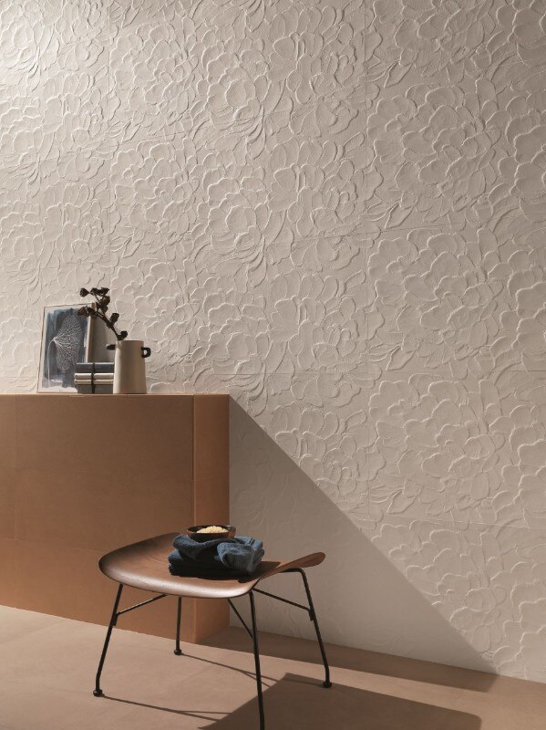 Lumina Sand Art è la reinterpretazione della precedente collezione Lumina, pensata per esprimere le varie sfaccettature del bianco. Ispirata a un’azione semplice come disegnare nella sabbia e disponibile nel formato 50 x 120 cm, la nuova serie include i pattern materici di Touch, i fiori in rilievo di Blossom, le geometrie di Stripes.