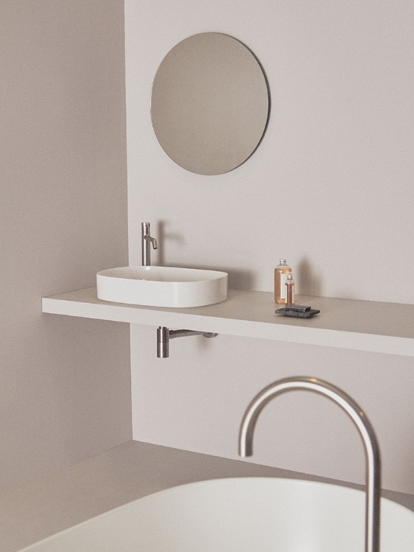 “Quando ti ispiri a un modello, ne assumi anche i valori che rappresenta, non solo il design in senso stretto”, spiega Roberto Palomba. La collezione Linda–X è realizzata con ceramica Diamatec®, un materiale ecosostenibile brevettato che garantisce bordi sottili e resistenti, ottenuto con una miscela di allumina e argilla calcinata.