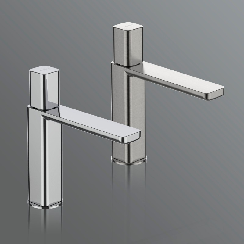 Sono due le versioni di miscelatore: monocomando con leva classica e con comando progressivo. Quest’ultimo permette di ottenere acqua fredda e calda tramite rotazione e un conseguente risparmio di energia e consumi.