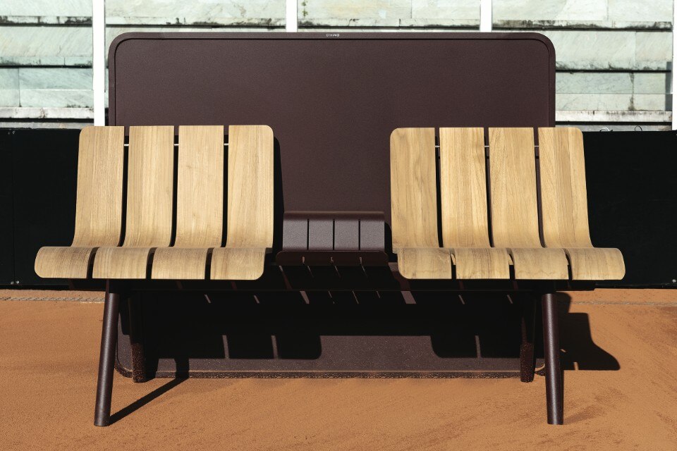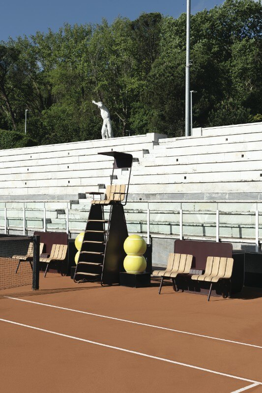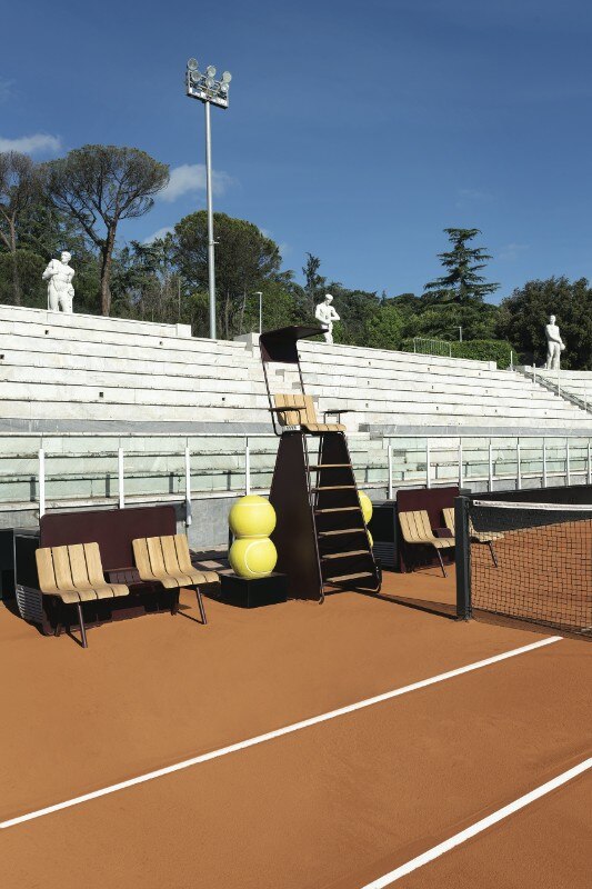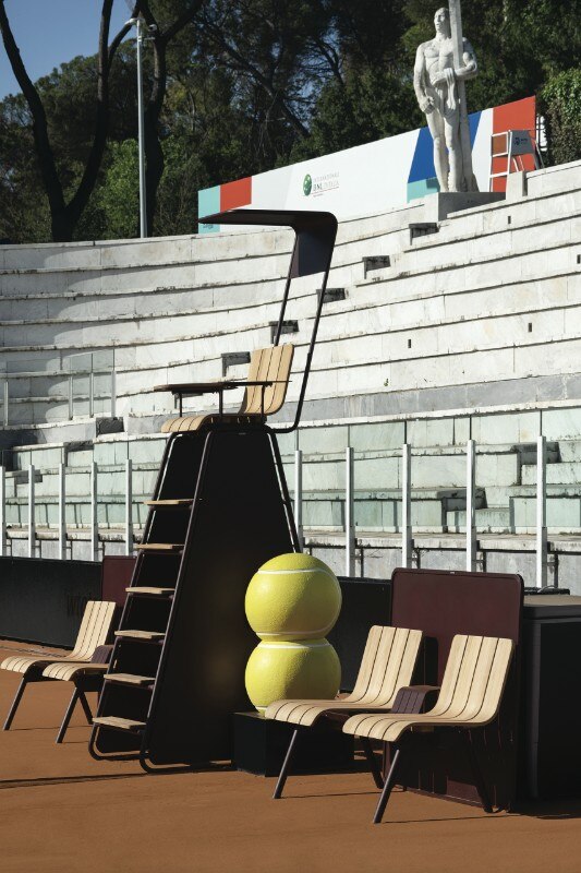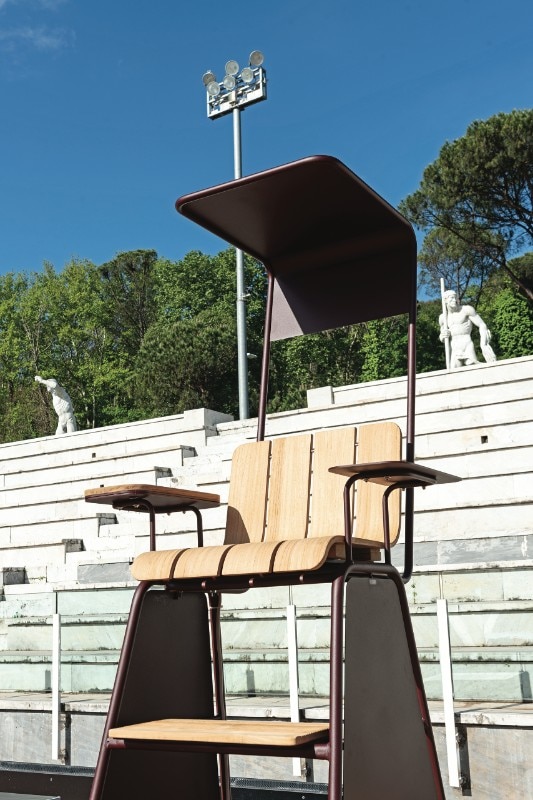 I complementi per lo sport outdoor rappresentano una nuova sfida per l’azienda e il designer francese, che reinterpretano le sedute destinate ad atleti e arbitri collocate sul bordo dei campi da tennis. La collezione si compone di sedia da arbitro, tavoli bassi e una panca per i giocatori, da completare con tavoli d’appoggio integrati, porta scarpe o contenitori per bevande.