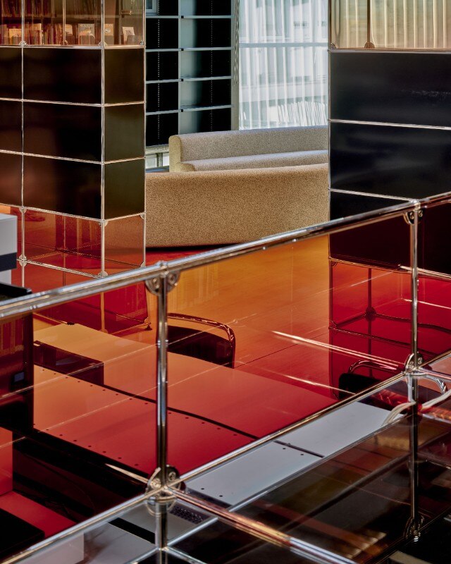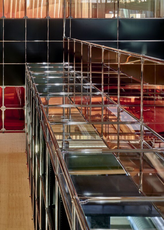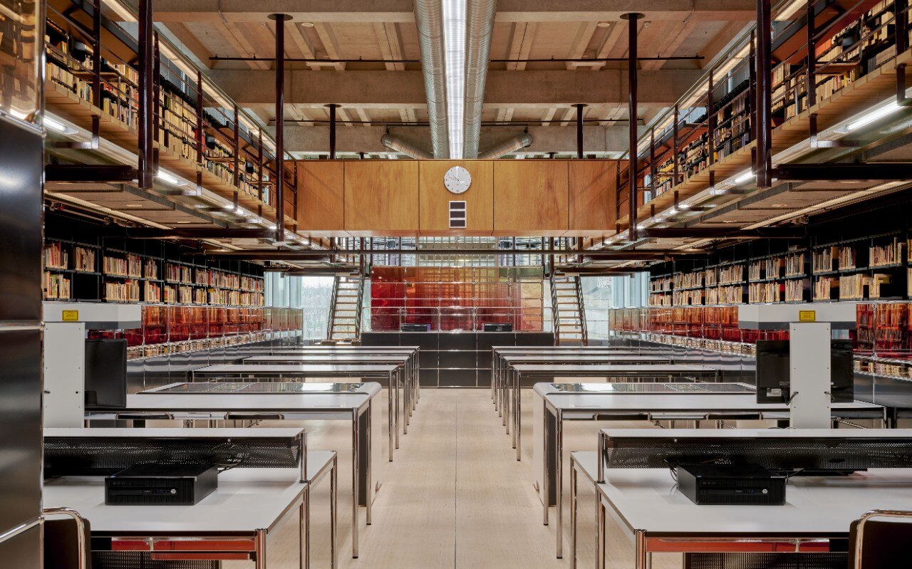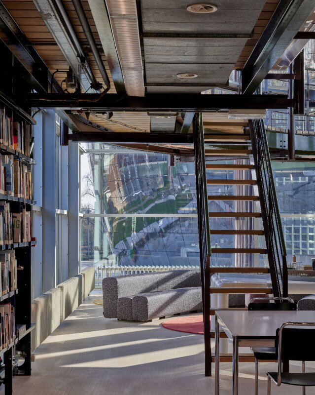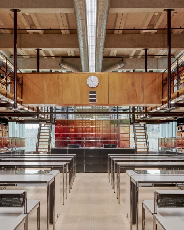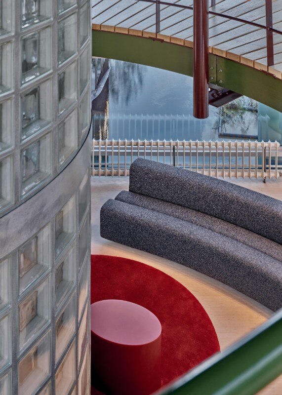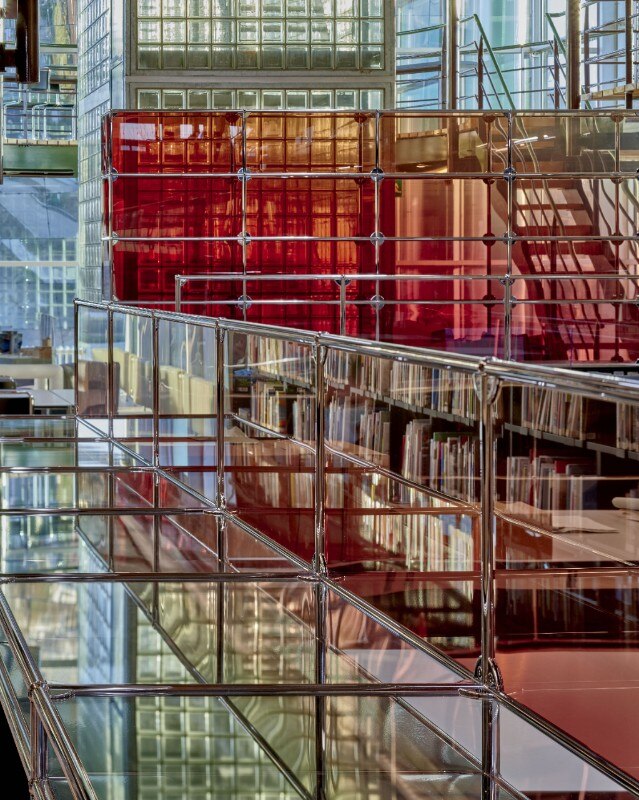 Conosciuta per le scelte di design orientate all’utilizzo di vetro, luce e resina, Marcelis gioca con la materialità, aggiungendo pannelli di vetro colorato all’arredo originale. Elementi in resina e l’apertura di alcune delle pareti hanno inoltre contribuito a rendere lo spazio più luminoso e accogliente: un luogo vibrante, adatto all’incontro, allo scambio, al lavoro e alla ricerca.