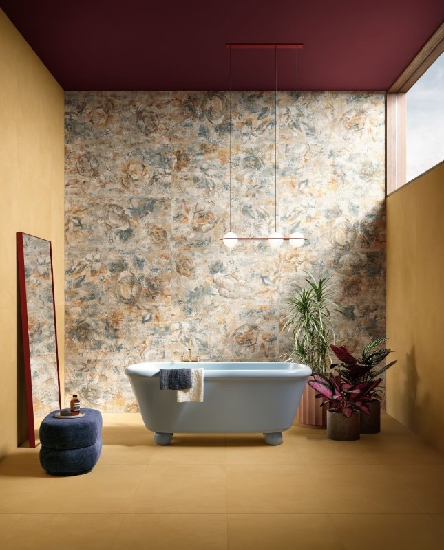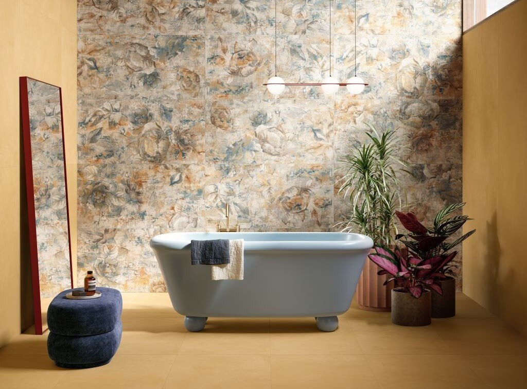 Completa la collezione il nuovo decoro Botanical, caratterizzato da pennellate piene di colore connesse al mondo della natura: un pattern che si aggiunge a quello di Seventy-nine della collezione, mix tra un tappeto e un wallpaper.