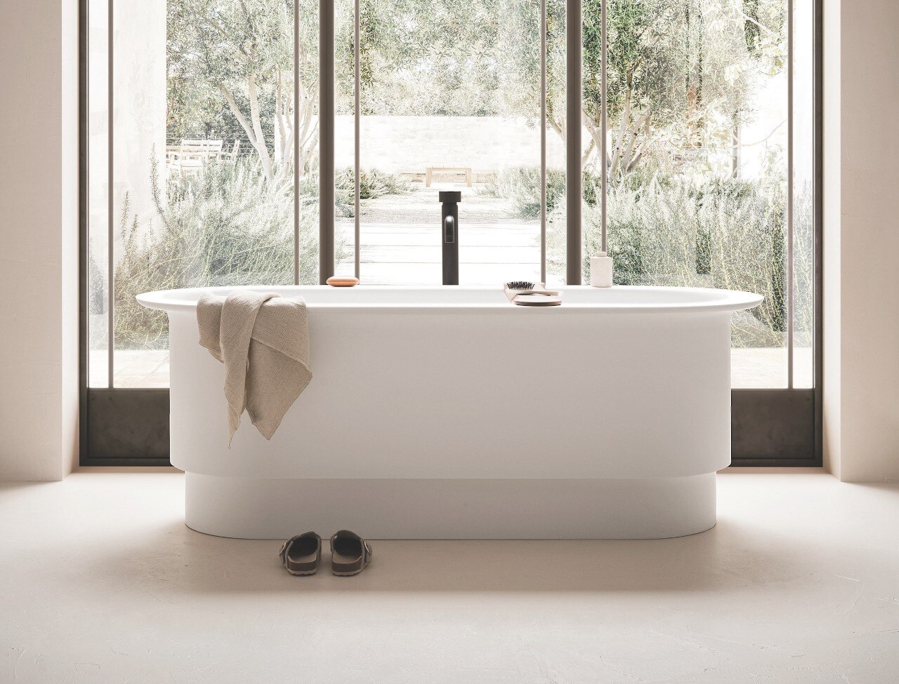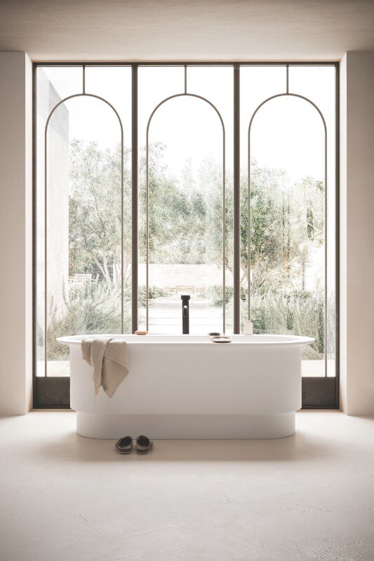 La vasca freestanding Roman è una delle novità di Arbi Arredobagno presentate in occasione di Cersaie 2021. Progettata da Garcìa Cumini, la proposta si ispira alle antiche vasche in pietra di epoca romana e si distingue per le linee avvolgenti ed essenziali.