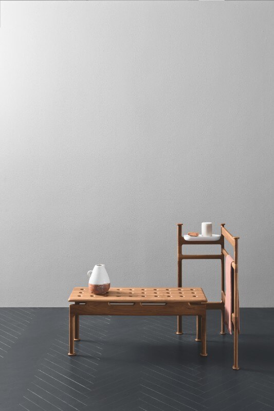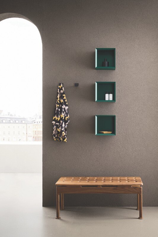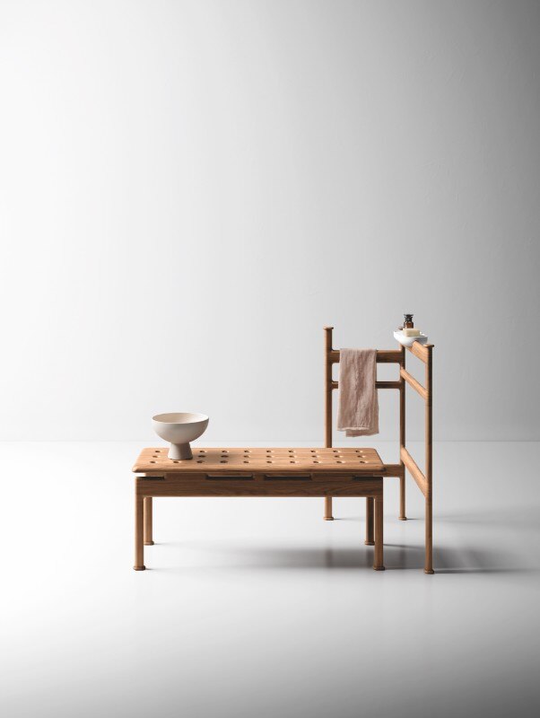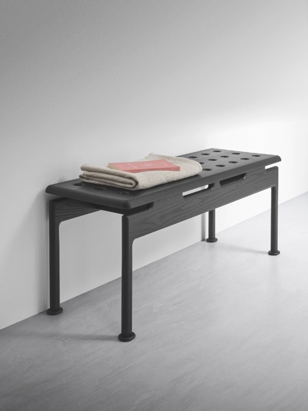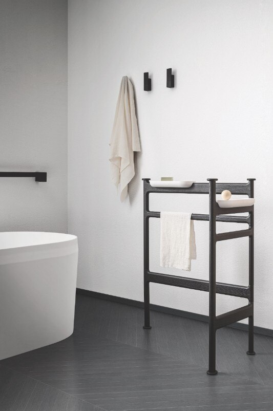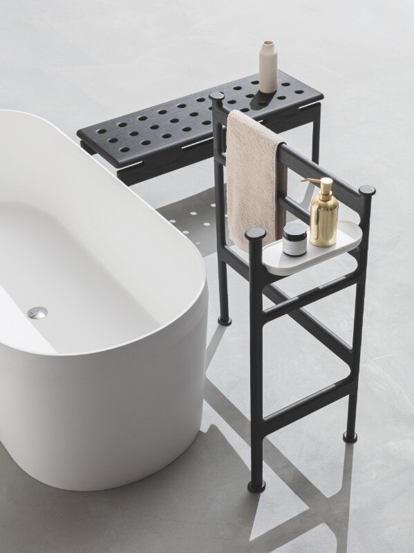 La vasca può essere completata con l’aggiunta di una mensola in noce canaletto e con una serie di accessori firmati Garcìa Cumini, come le mensole multiuso Reed, gli appendini Tokh e il portasalviette freestanding in legno massello Step – quest’ultimo presentato in occasione della fiera di Bologna insieme alla vasca e alla panca Step.