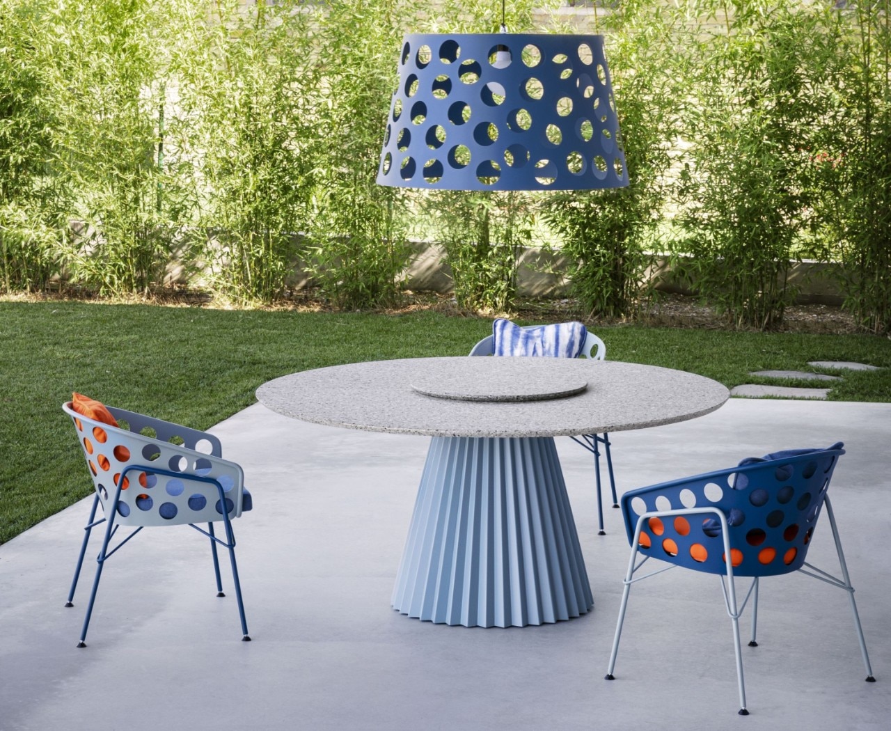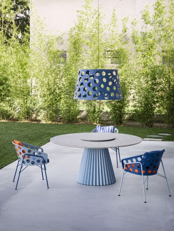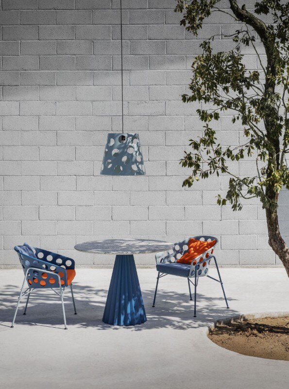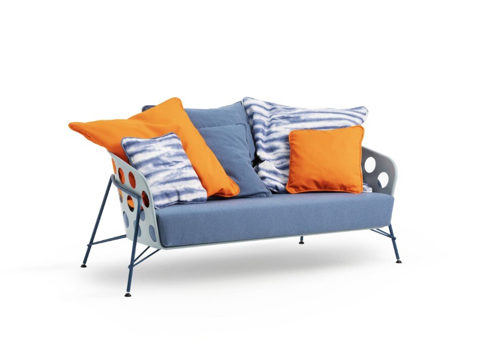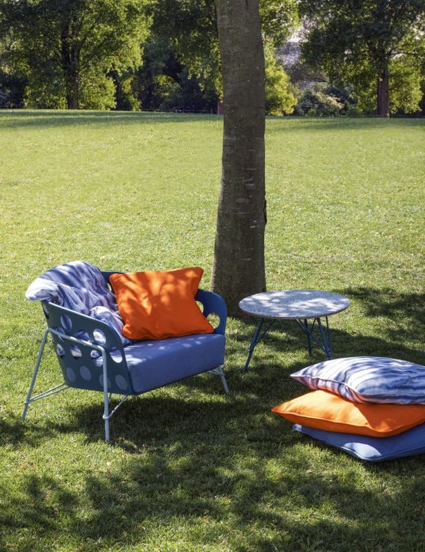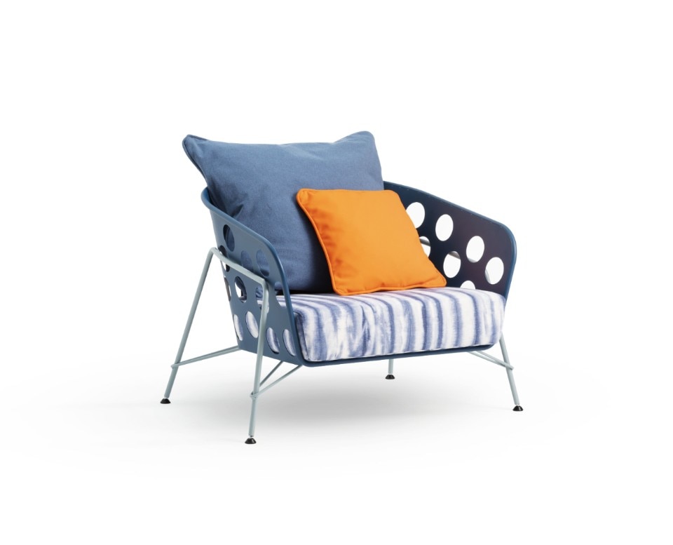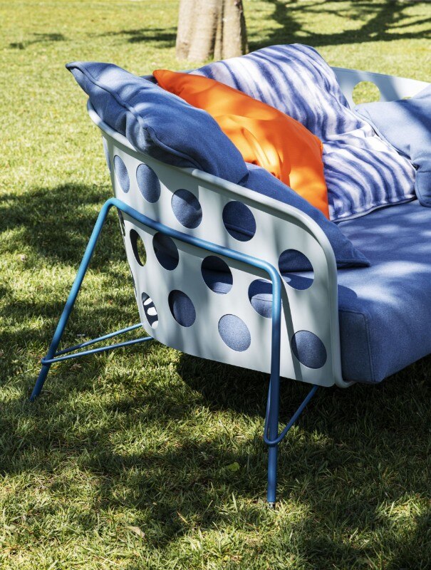 Pensata per l’outdoor, include divani, poltrone, tavoli, sedie e lampade in metallo colorato macro forato. La speciale lavorazione delle scocche metalliche, che produce una trama dal forte impatto grafico, dà il nome alla serie.