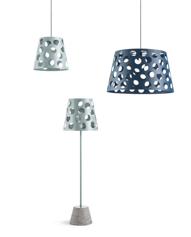 Le sedute sono gusci avvolgenti da completare con cuscini, le lampade sono pensate per illuminare terrazzi, giardini e dehor, sempre seguendo la tonalità cromatica predominante: quella del mare.