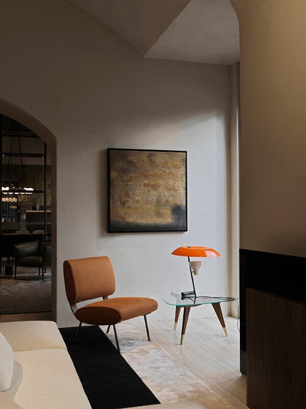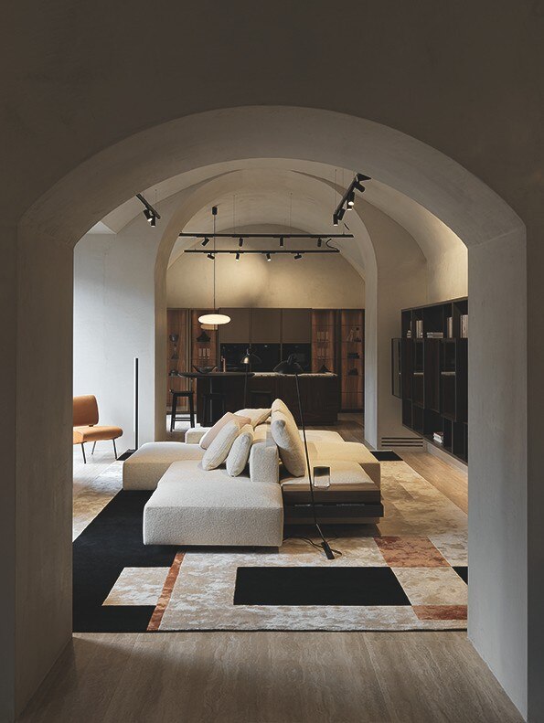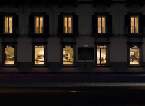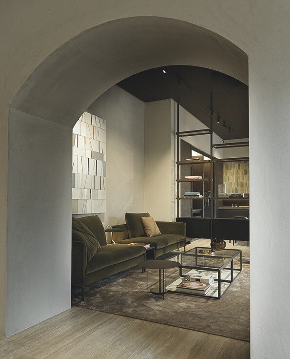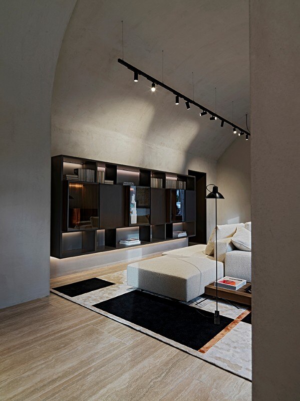 Lo spazio, collocato al piano terra, è distribuito su oltre 200 mq e si affaccia sulla città attraverso 5 ampie vetrine. La struttura architettonica originale è stata valorizzata con l’utilizzo di pavimenti in travertino e di un rasante bone sulle pareti. Un percorso materico dai colori caldi, a cui si uniscono varie tonalità di grigi, forma un ambiente accogliente e fluido che contiene i prodotti delle nuove collezioni Molteni&C|Dada.