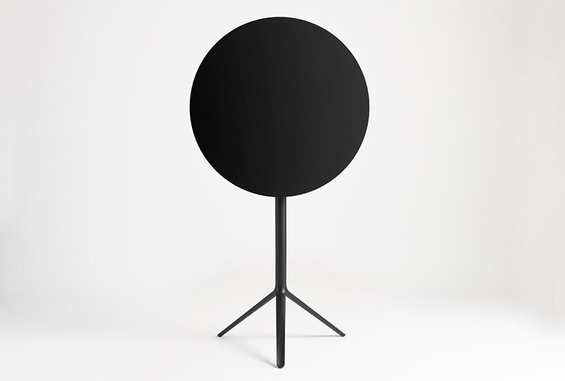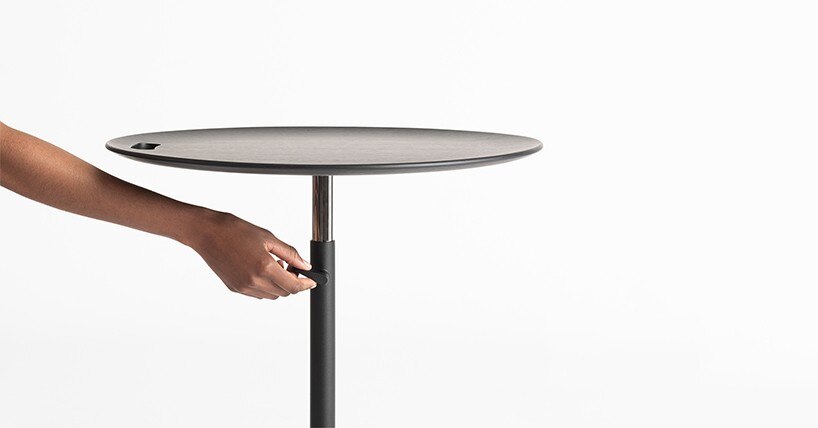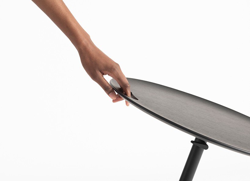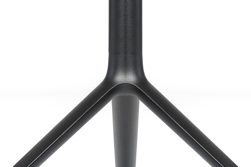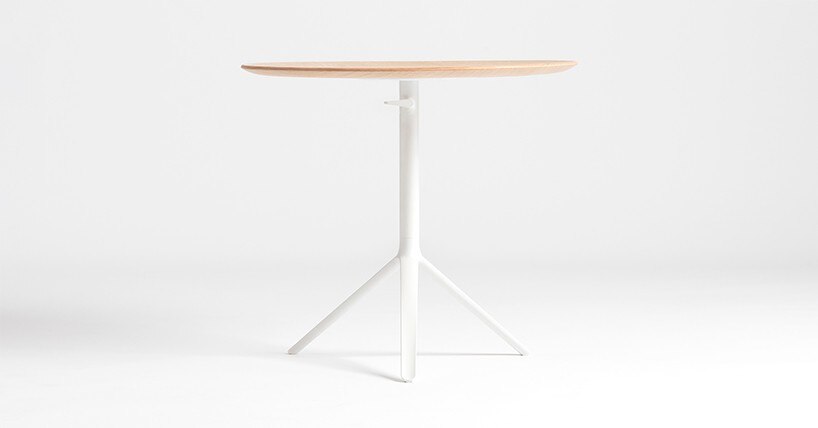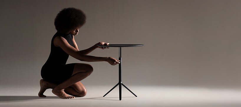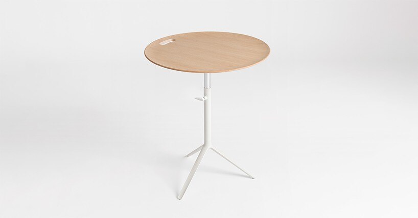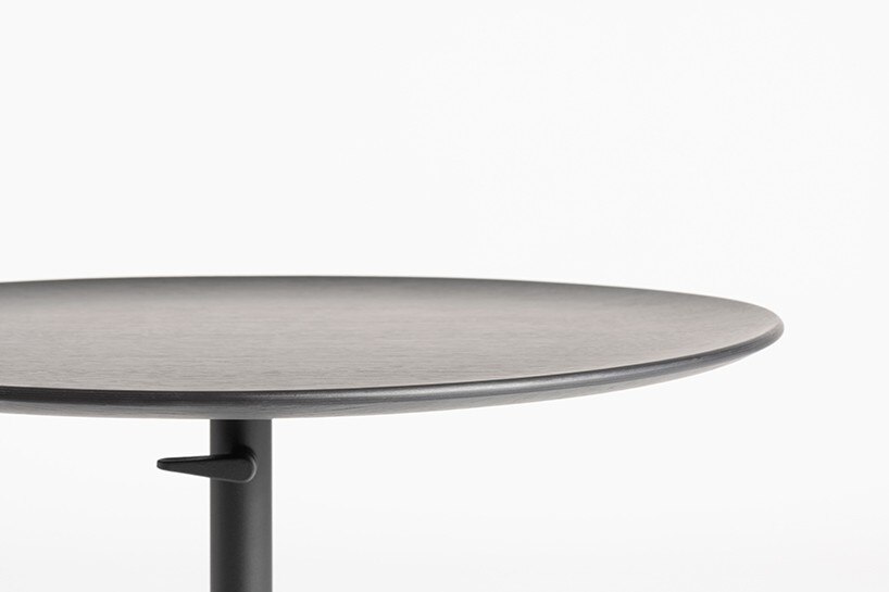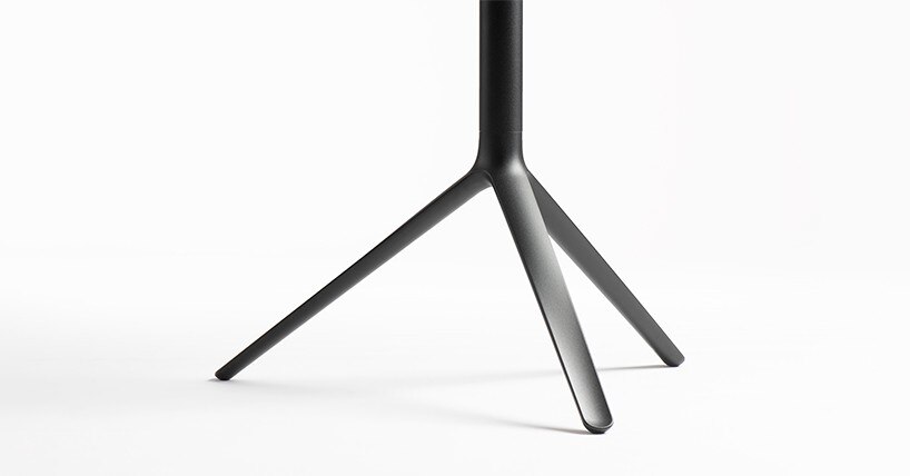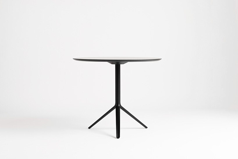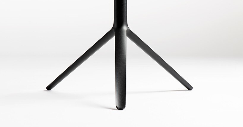 La collezione, caratterizzata dalla gamba a treppiede, include tre tipologie di tavolino: impilabile da bar, impilabile da dining e regolabile in altezza per diverse occasioni. La serie dimostra come la produzione industriale possa generare forme espressive e delicate, modellate apparentemente dalla mano di un artigiano.
