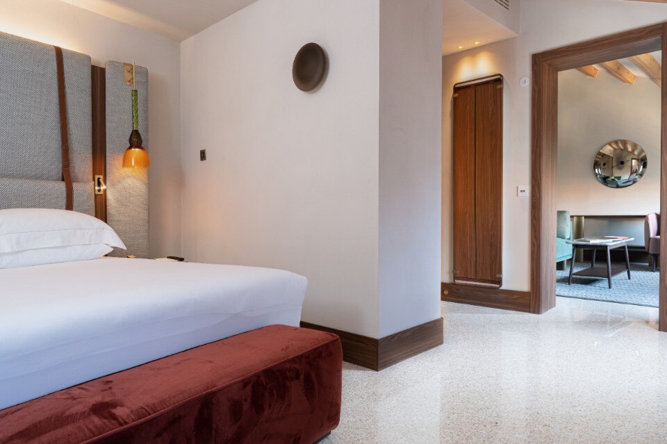 Ca’ di Dio, l’antico rifugio per pellegrini e donne in difficoltà, è stata trasformata in un hotel che si ispira alla città e rende contemporanee le preesistenze. Un inno a Venezia e al suo passato: gli spazi sono definiti da una palette tenue e da gradazioni leggere, rimando ai riflessi della laguna, e uniscono il rigore della struttura iniziale alla raffinatezza dei palazzi nobiliari.