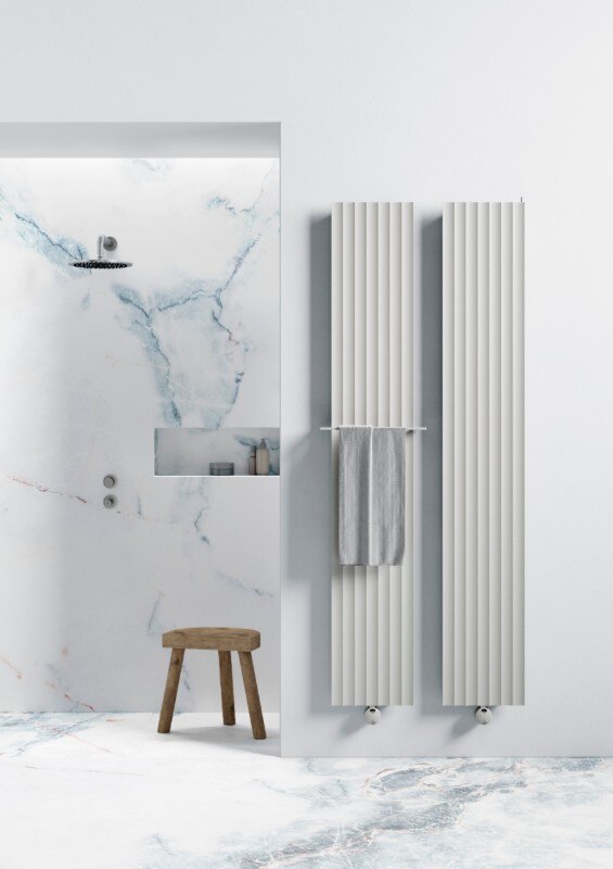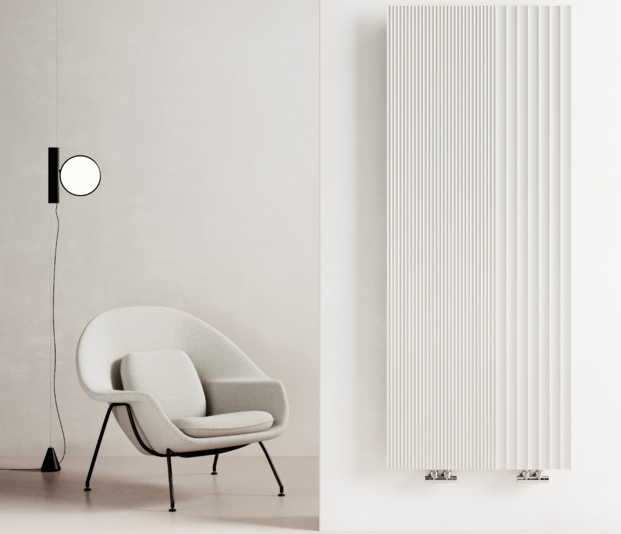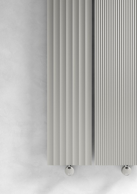 I due nuovi radiatori si ispirano al concetto di luce: quella materia che fa parte del progetto architettonico e che crea con le superfici riflessi, ombre e disegni. Due texture tridimensionali, 1000 righe e 100 righe, dialogano con la luce, la sua inclinazione e i suoi cambiamenti durante la giornata, e sono definite da scanalature verticali concave. 1000 righe presenta un passo fitto e ripetitivo, 100 righe invece scandisce un ritmo più leggero e arioso.