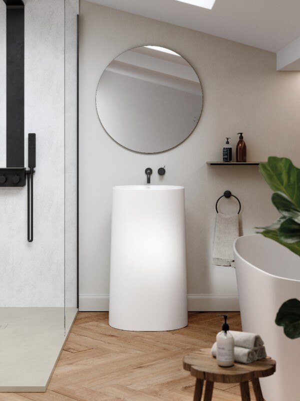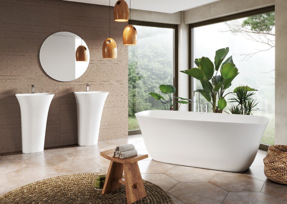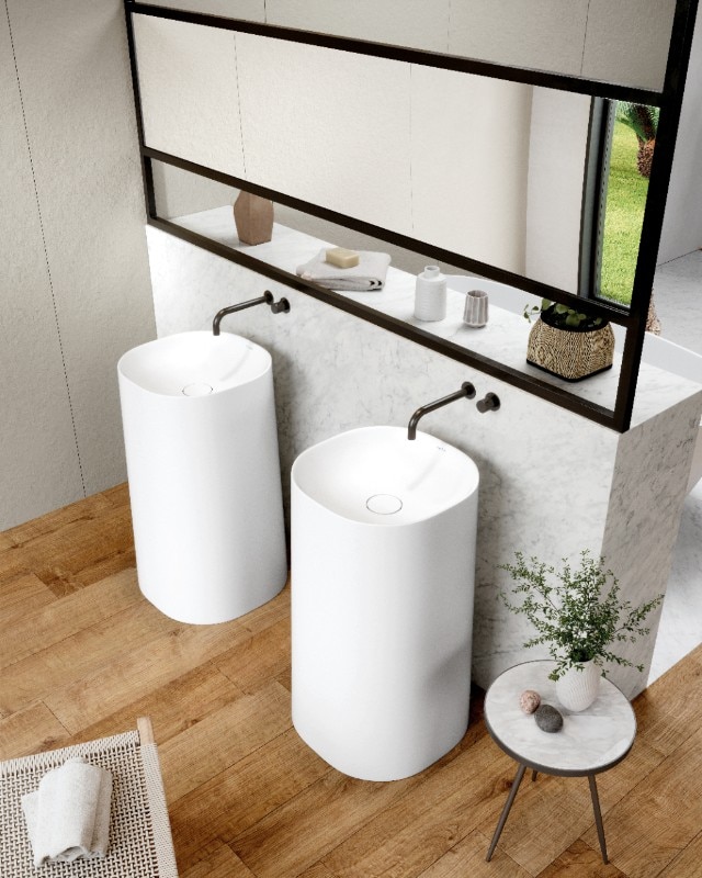 Linee pulite ed essenziali definicono i lavabi freestanding della collezione Acquawhite di Acquabella, che propone un nuovo modo di utilizzare lo spazio dell’ambiente bagno.
