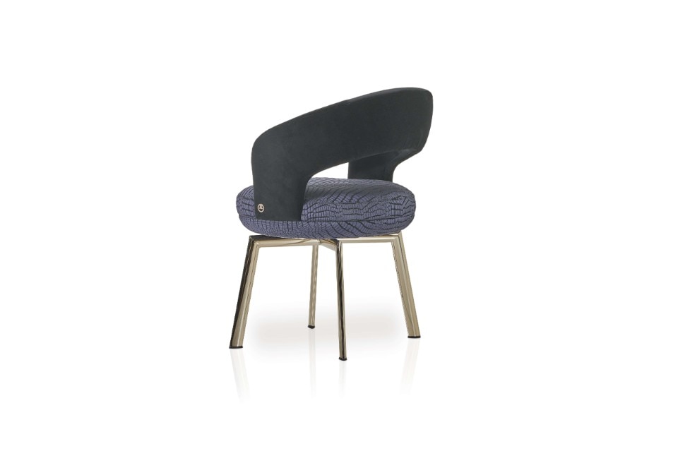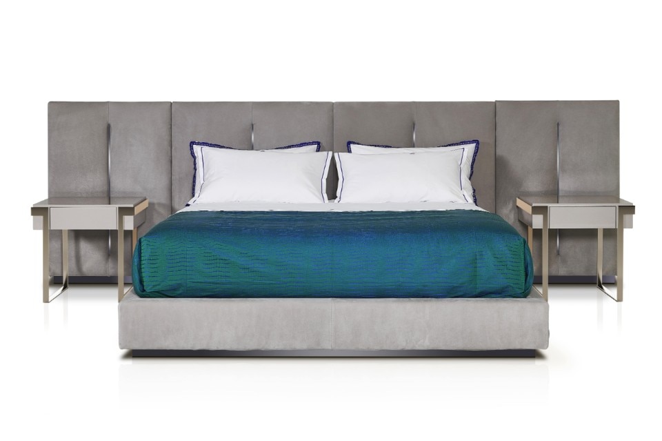 La zona pranzo presenta due versioni del tavolo Pavillon, che unisce un piano in marmo, vetro laccato e molato o legno a una base in metallo. Le sedie Martha, in un rimando agli anni Cinquanta, sono abbinate al tavolo. Al piano inferiore si trovano gli arredi della zona notte, con i letti Avenue e Night Club che uniscono comfort e lusso.