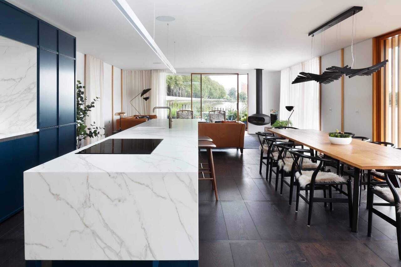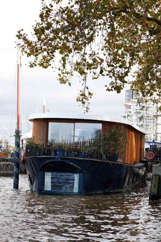 La Floating Villa, progettata dallo studio Lab Architects, è una casa galleggiante a Londra che propone la sicurezza di un’abitazione privata e le suggestioni di una barca. L’esterno è caratterizzato da listelli di legno che servono a schermare la luce mentre gli interni, distribuiti su due livelli, ospitano un grande open space, cucina e soggiorno, e una zona notte con camere e bagni al piano inferiore, più intima e privata.