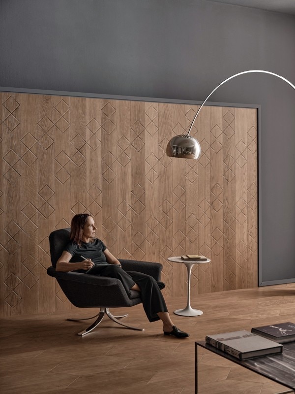 Il capoluogo lombardo, con la sua cultura architettonica, ha fornito lo spunto per un pavimento con un taglio angolare: un effetto spina incrociata proprio della tradizione milanese, espresso in veste contemporanea, disponibile nelle versioni di boiserie Niemeyer, Necchi e Giò.