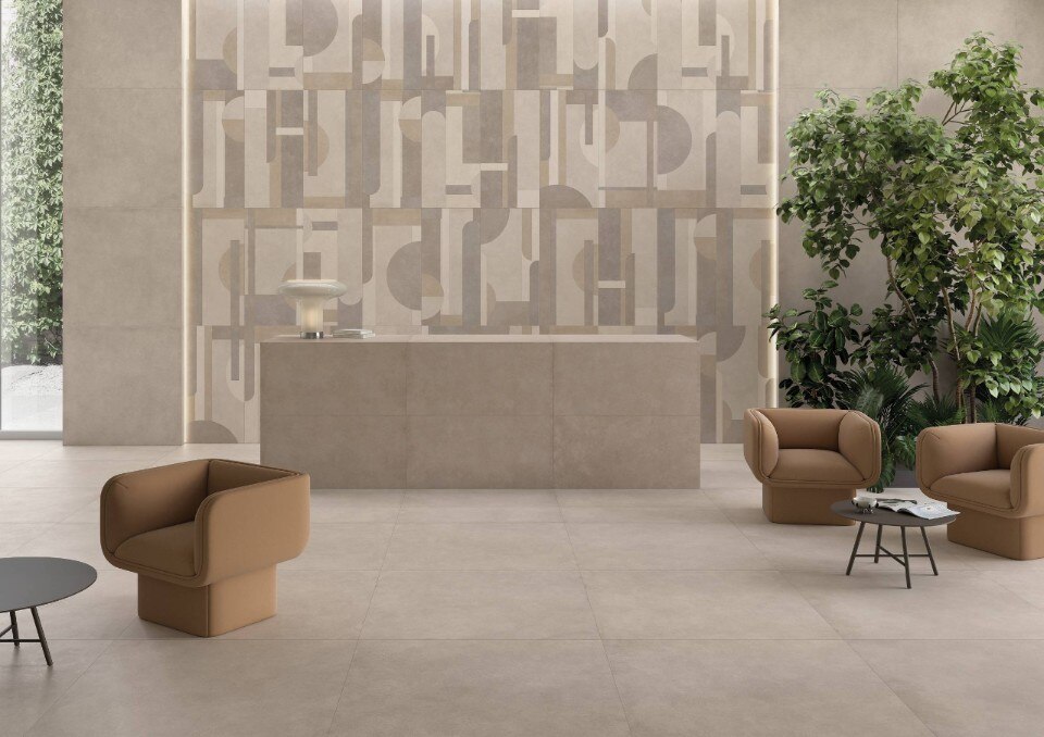 La collezione, adatta a spazi privati e commerciali, è disponibile nei formati per indoor e per esterni e può essere personalizzata con i decori Shape e Wire 3D in rilievo.