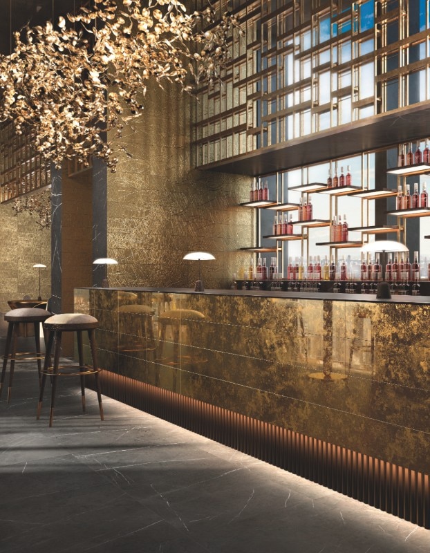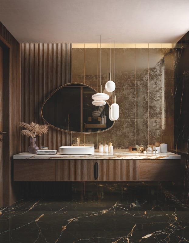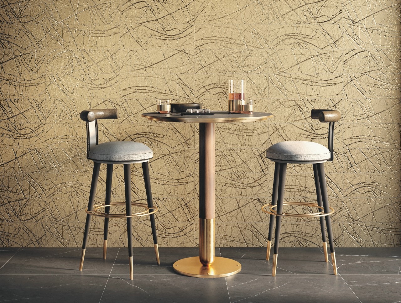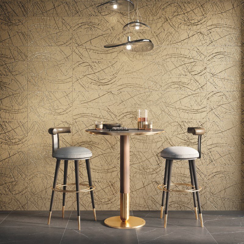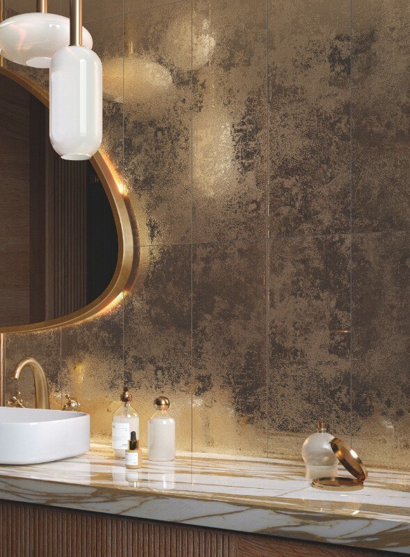 Reflet propone un’esplorazione del riflesso, che in architettura è elemento strutturale e narrativo della forma stessa. La collezione è disponibile nel formato 200x600mm e nelle finiture Antique, ad effetto specchiante anticato, e Sketch, ad effetto opaco con accenti luminosi. Le superfici sono proposte in tre tonalità diverse, personalizzabili e durevoli, ideate per il benessere sociale e ambientale.