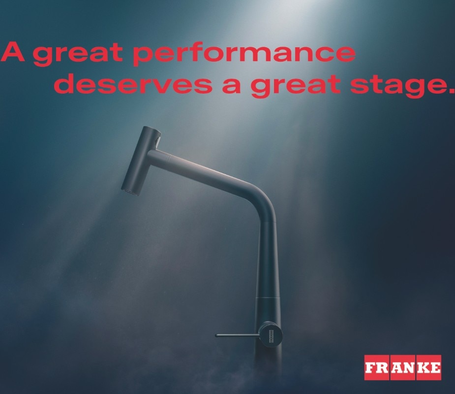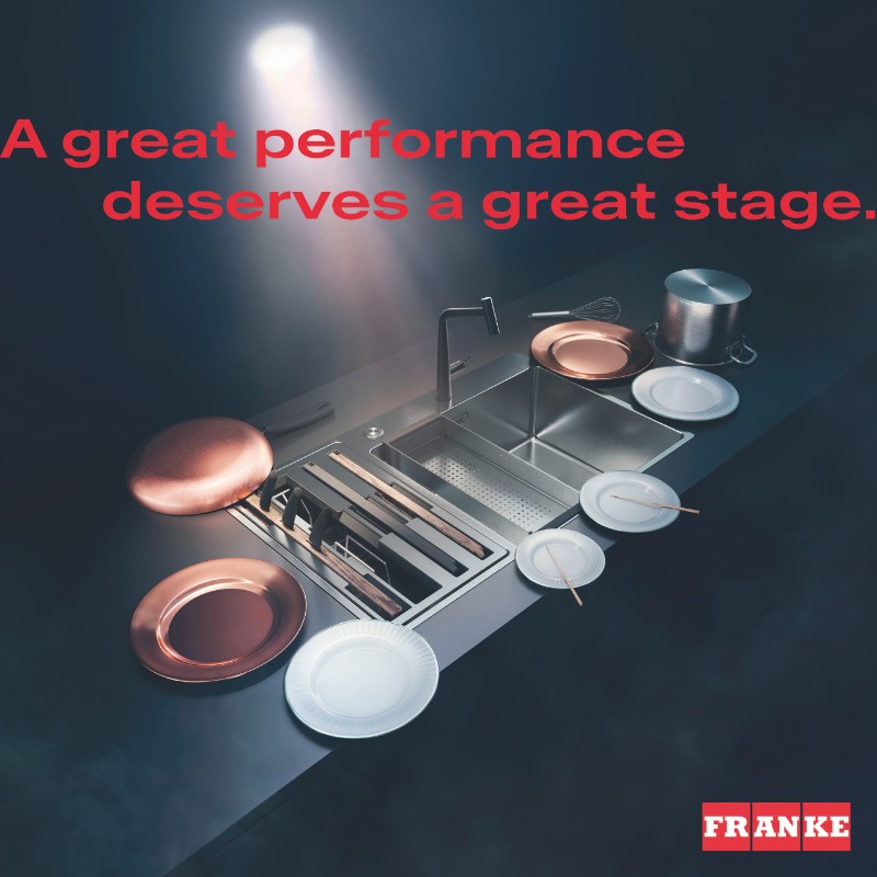Nello spot video l’home cooking diventa protagonista e la cucina un palcoscenico dove esibire doti culinarie e fantasia ai fornelli: il piano con i piatti assomiglia a una grandiosa batteria e il miscelatore a un microfono pronto a stupire. Il claim “A Great Performance Deserves a Great Stage” (“Una grande performance merita un grande palco”) spiega come i prodotti di Franke siano adatti a soddisfare i vari interessi attraverso la tecnologia e strumenti all’avanguardia.