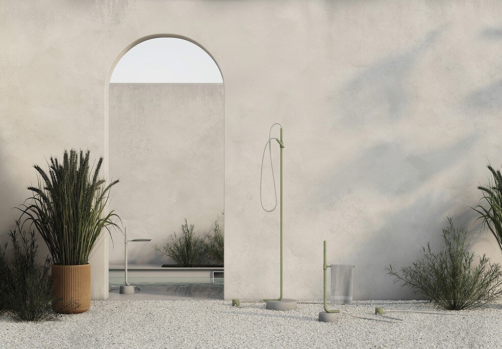 Fima Carlo Frattini, azienda leader nel settore rubinetteria, propone tre nuove docce open air, Out.Side, Marmorea e Ingiro, per una nuova scoperta degli spazi esterni.
