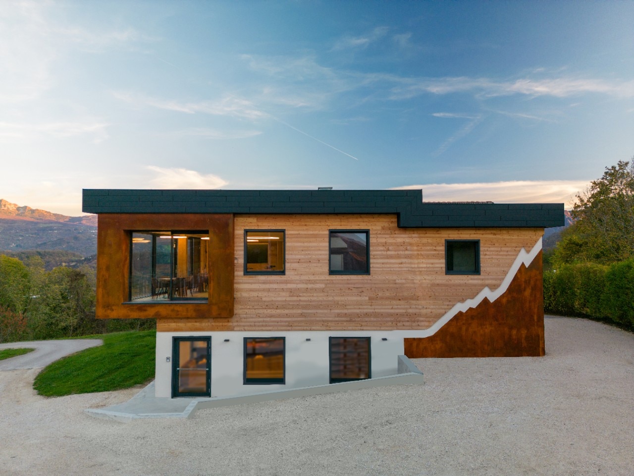 Recentemente ristrutturata, l’architettura fonde i toni del legno con tratti netti. Gli esterni sono stati valorizzati utilizzando texture materiche e calde: la nuance tenue del legno in facciata si abbina al colore del metallo arrugginito del rivestimento Oxydecor Rust, finitura appartenente alla linea di pitture decorative Oxydecor di Isoplam.