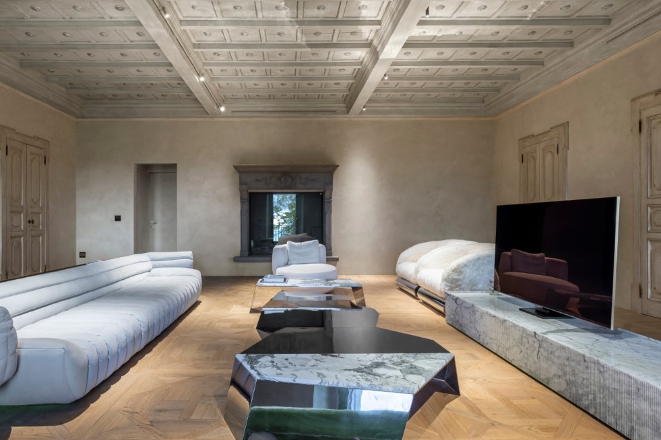 Il progetto Colle Allegro, nella campagna in provincia di Arezzo, è un’ampia villa formata da cinque unità abitative. Pavimenti di legno, finiture murarie in calce e soffitti a cassettoni prodotti da artigiani in Umbria sono i tratti principali delle varie residenze, che trasmettono il fascino della storia.