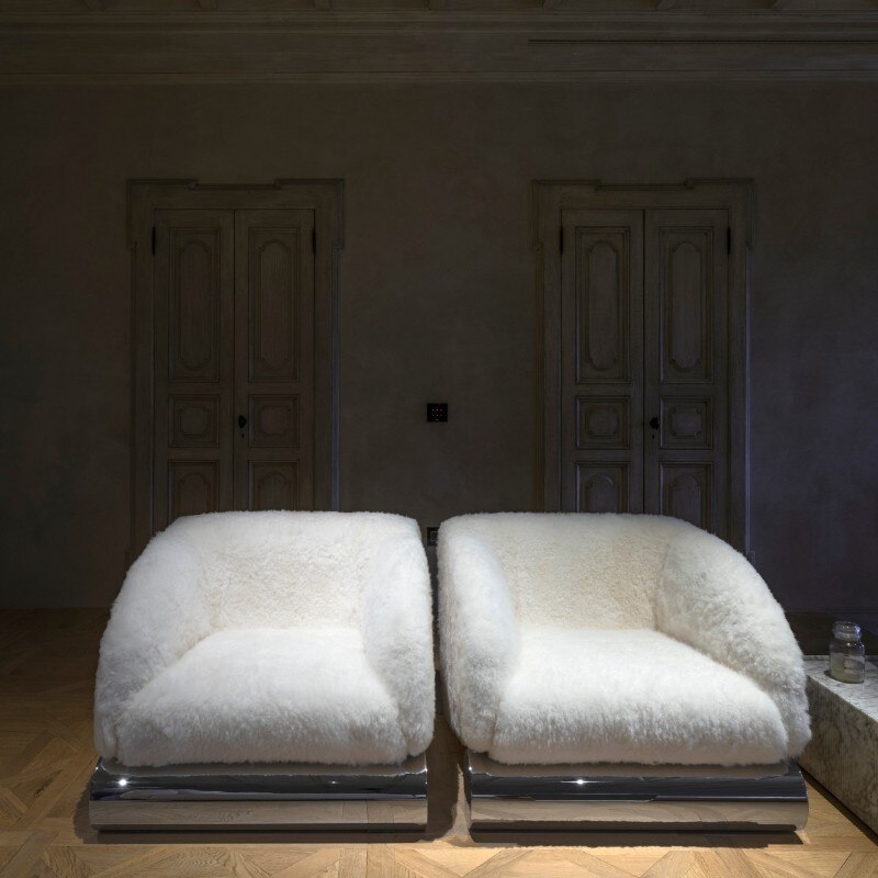 I comandi sono stati abbinati alle placche della serie Eikon Evo dalla finitura cromata, valorizzando le prese di corrente per i loro materiali pregiati.