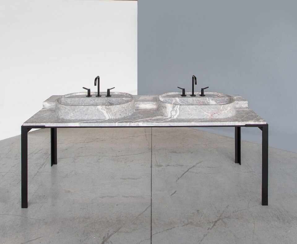 Prodotti che, attraverso la decostruzione della materia litica, abbinano l’irregolarità della pietra naturale alla precisione del metallo, il naturale all’artificiale.