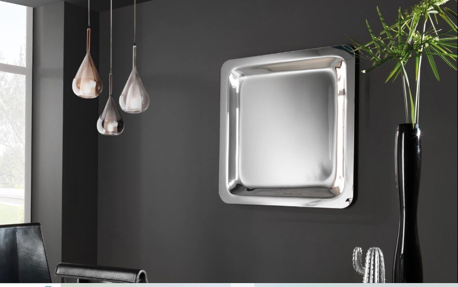 I complementi, disponibili nelle colorazioni blu, rame, bronzo, argento e antracite, propongono cornici in vetro di forma tonda (90 cm di diametro) quadrata (90x90 cm) e rettangolare (100x193 cm). Lo specchio è un unico pezzo di vetro ricurvo che mantiene al centro la parte piana di 4 mm. La sua superficie viene argentata consentendone l’utilizzo come un tradizionale specchio ma l’effetto di stondatura su tutta la circonferenza fa risaltare l’unicità del prodotto.